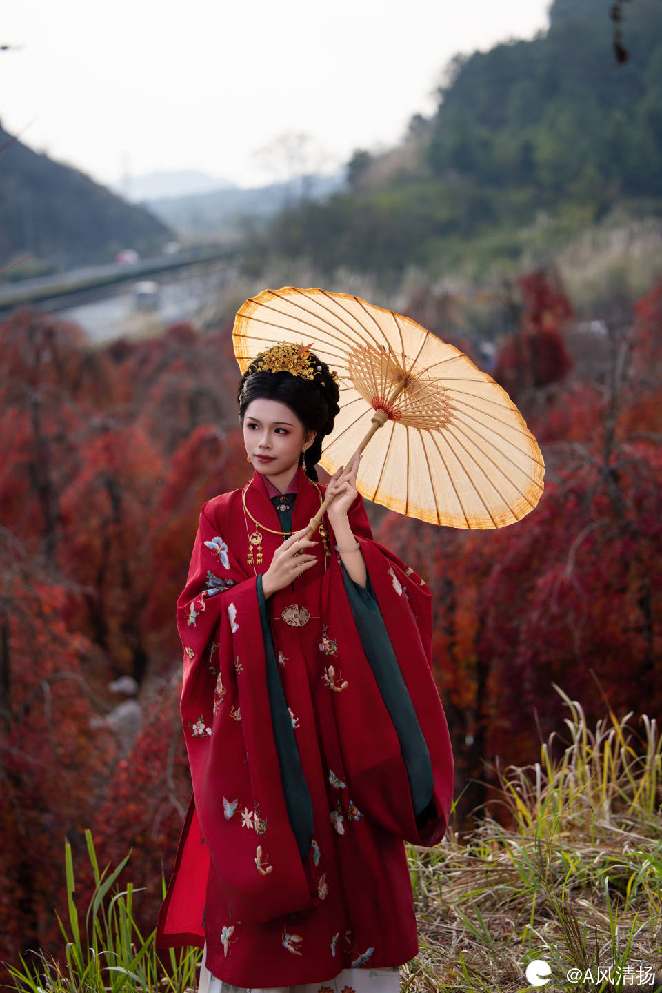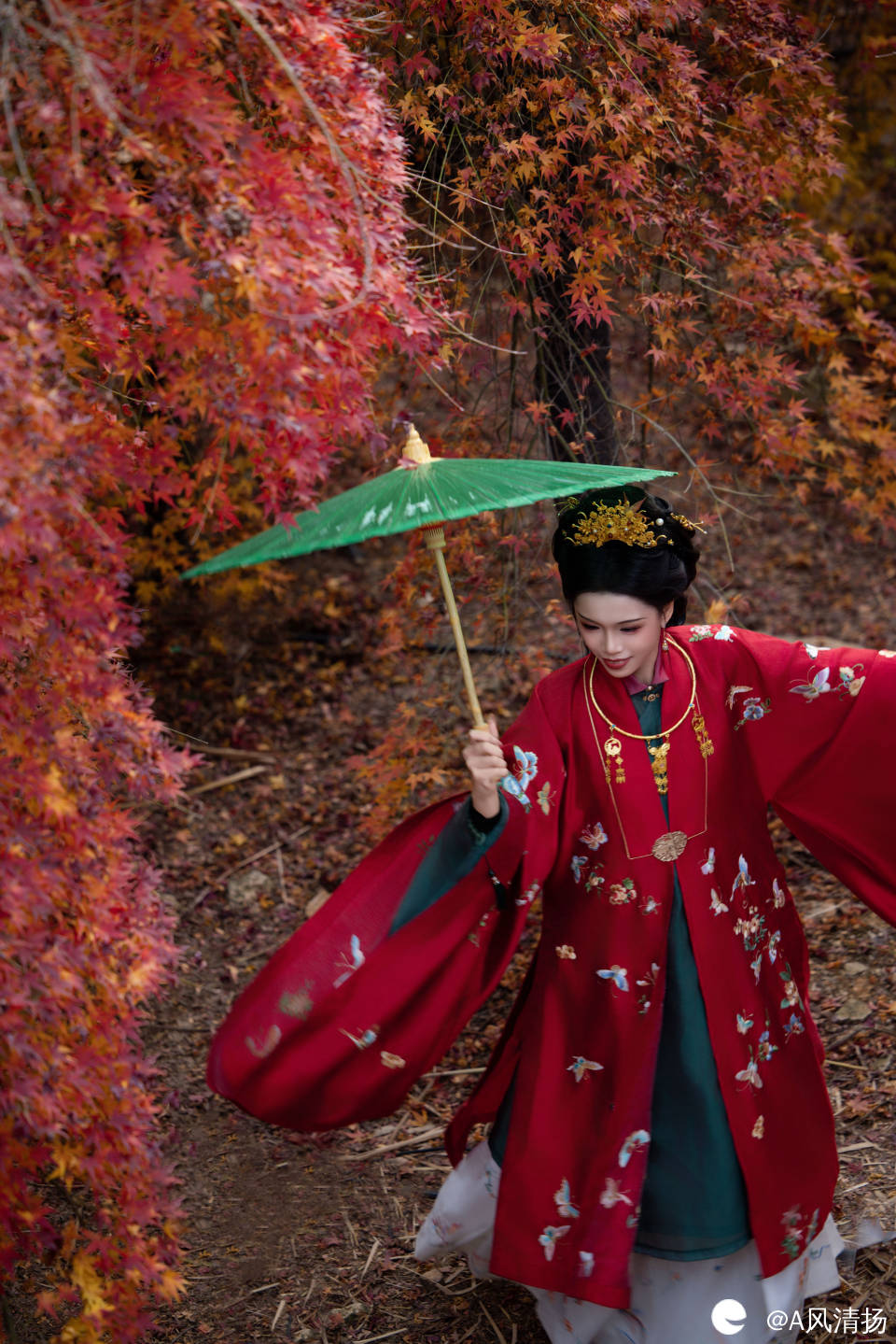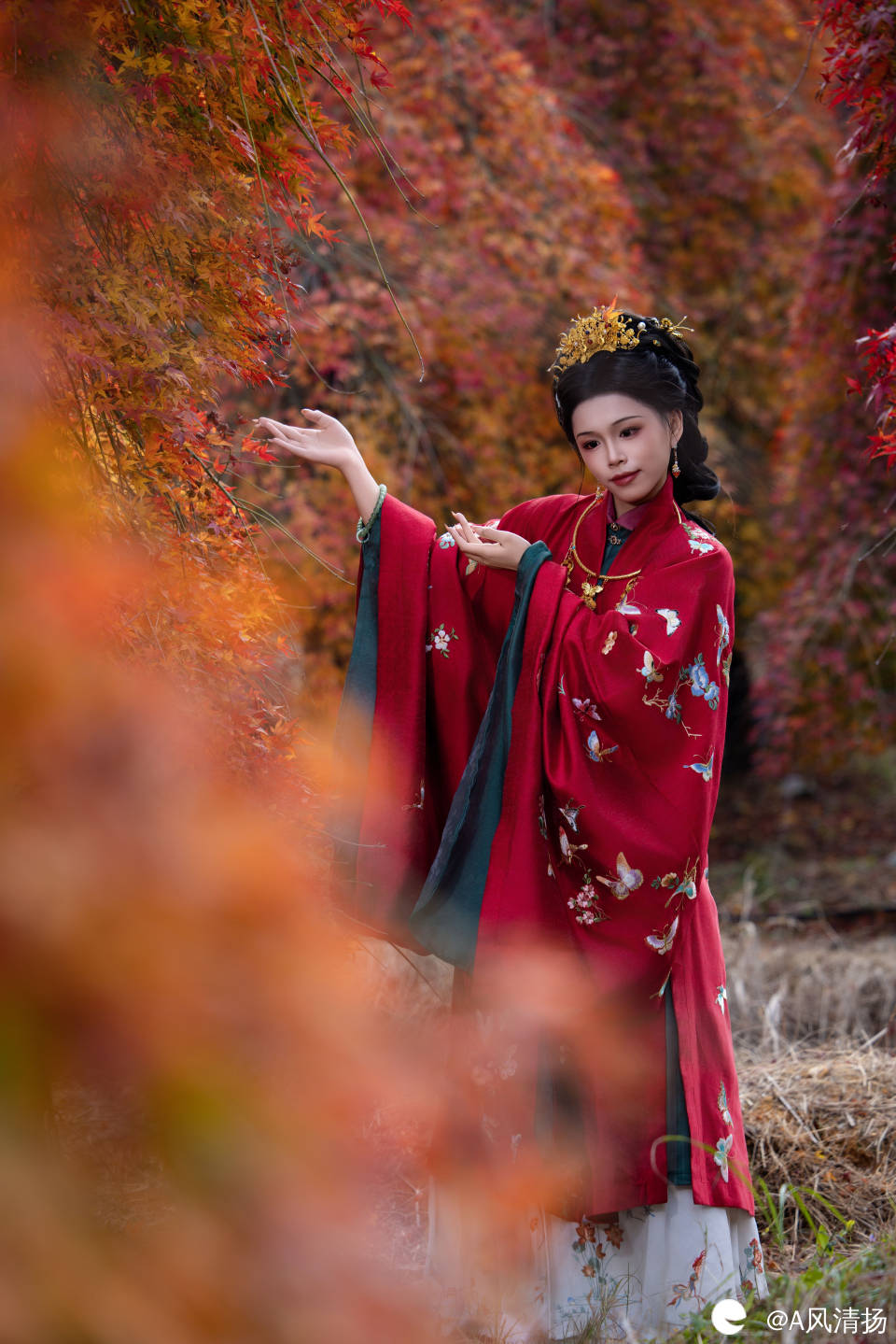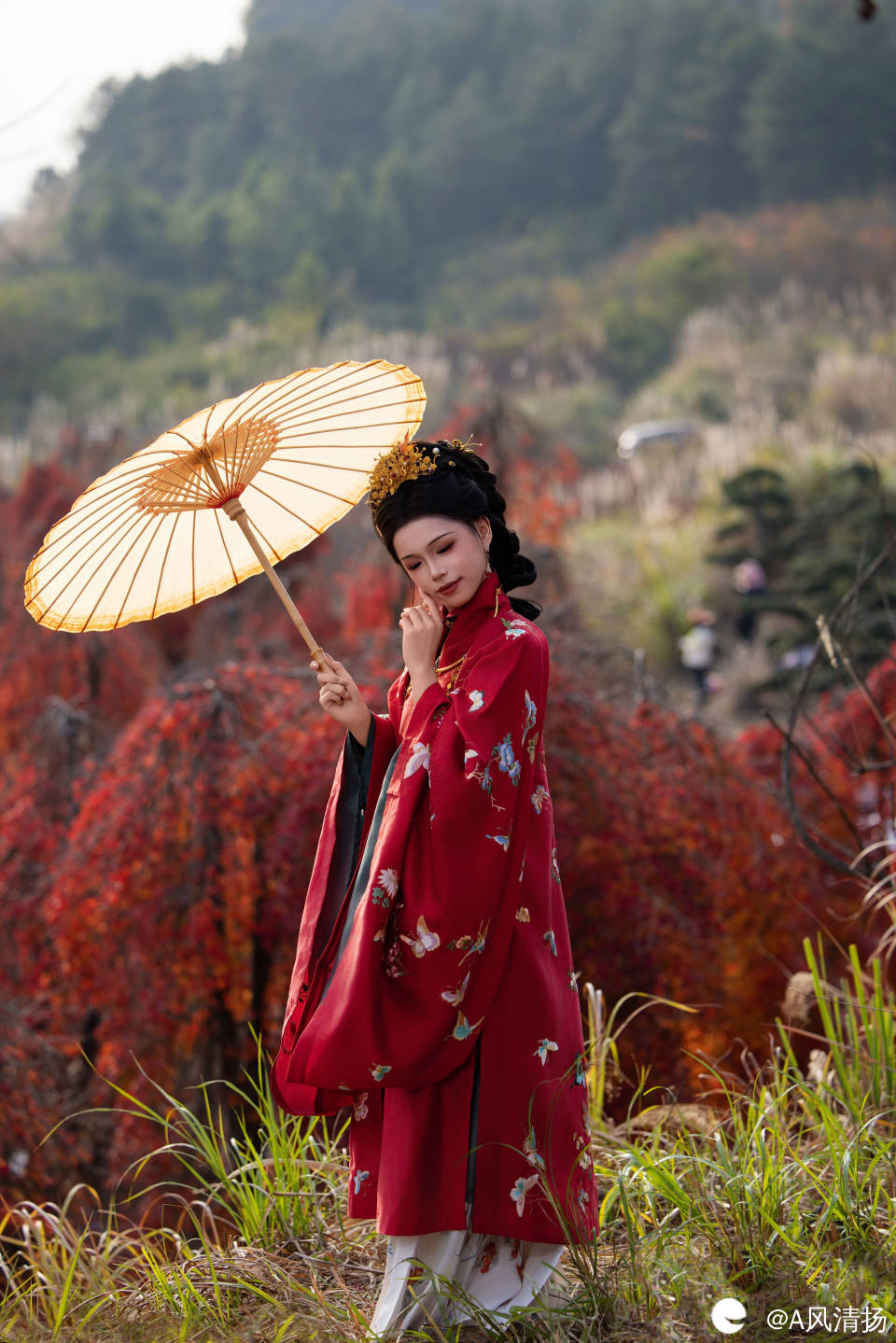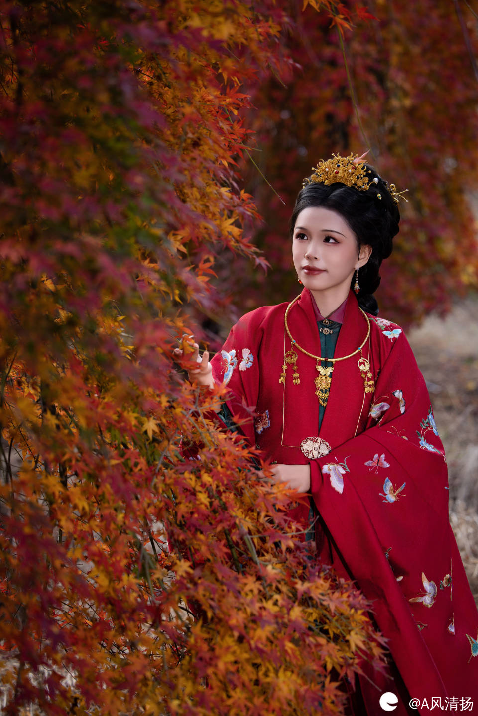 红枫似火照山中,寒冷秋风袭树丛,丹叶顺时别枝去,来年满岭又枫红……