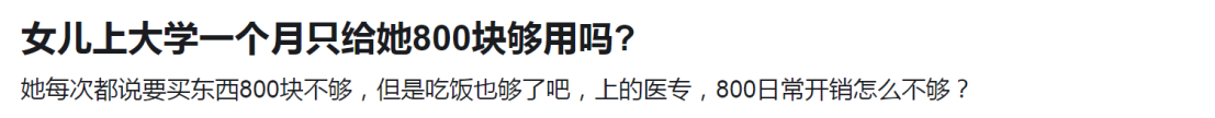 我就看到过一位家长在网上询问,给大一新生800块生活费,问大家够不够?
