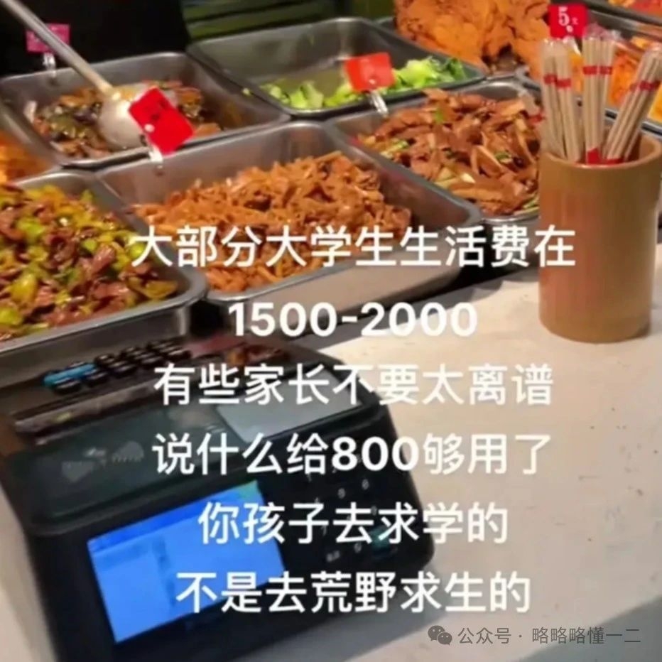 有网友直接在评论区里说大部分大学生的生活费在1500-2000元,有些家长未免也太离谱了,给孩子800块钱。