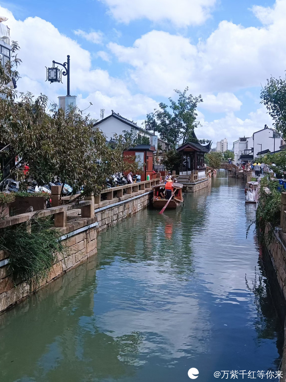 河渠中的乌蓬船,载着饶有兴致的游人,摇撸的大姐,合着江南小调,如沐春风的轻声吟唱,惹得路人,驻足倾听……
