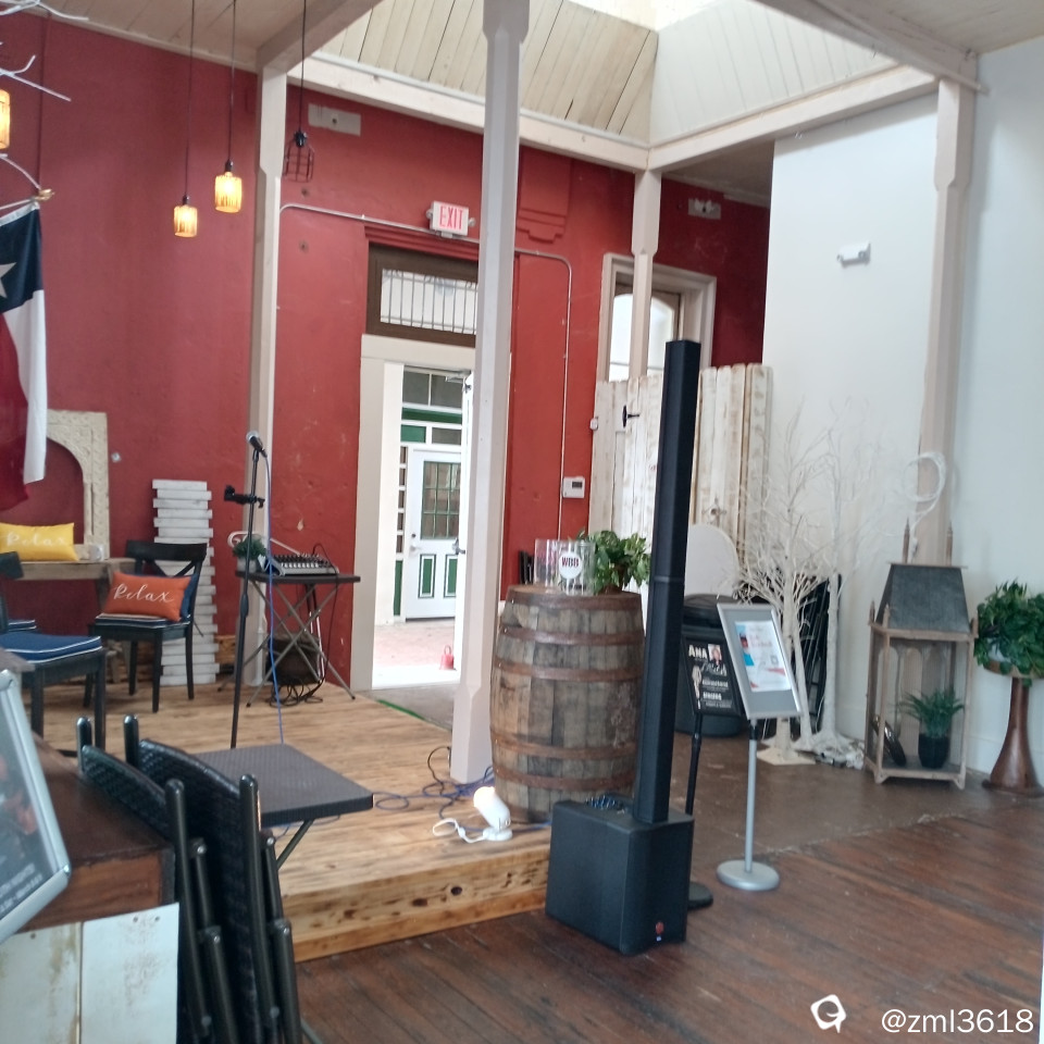 小镇里的小酒馆,里面还有还摆放着乐器。这天没有营业。