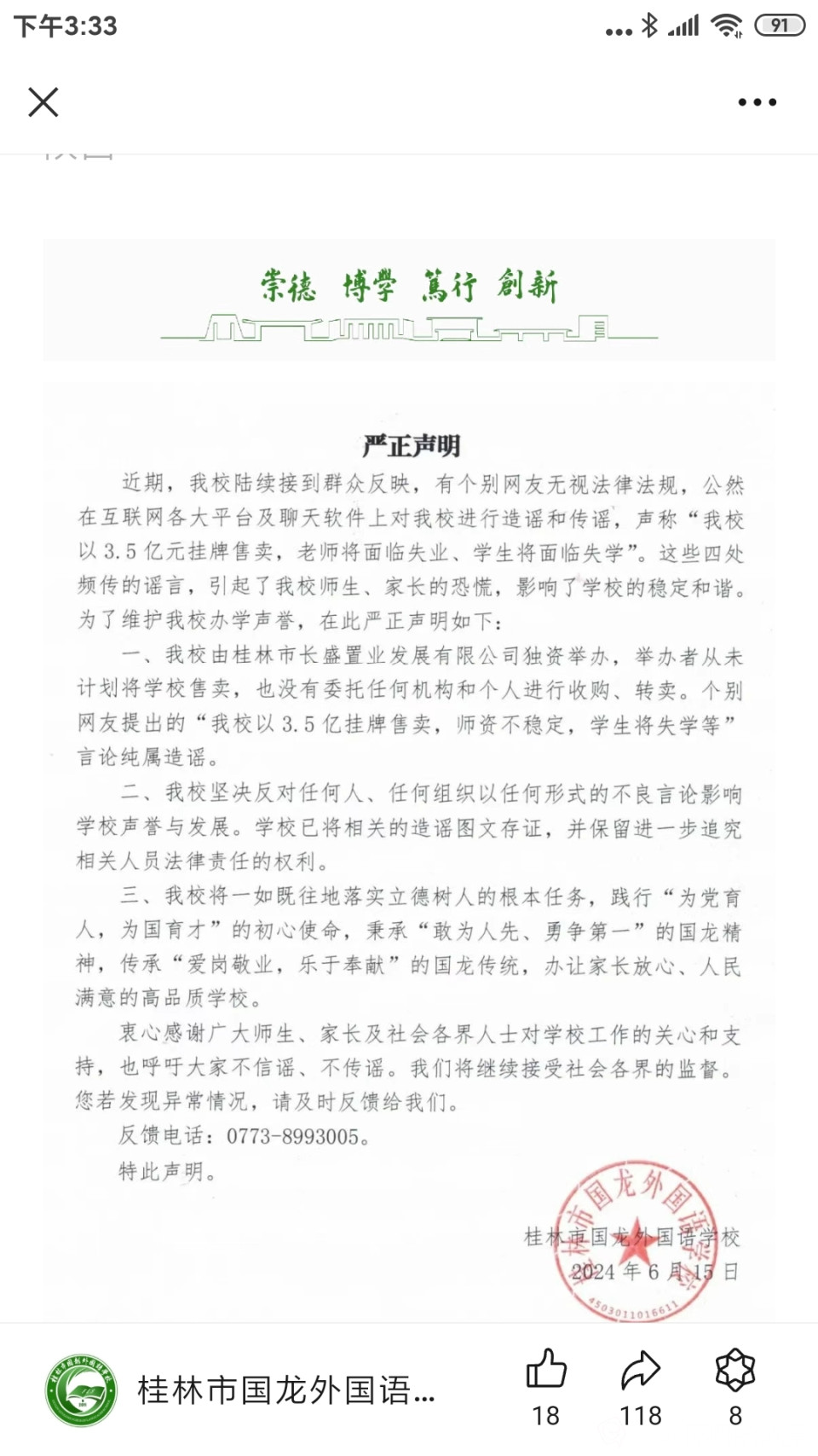 [新闻爆料] 国龙外校严正声明!