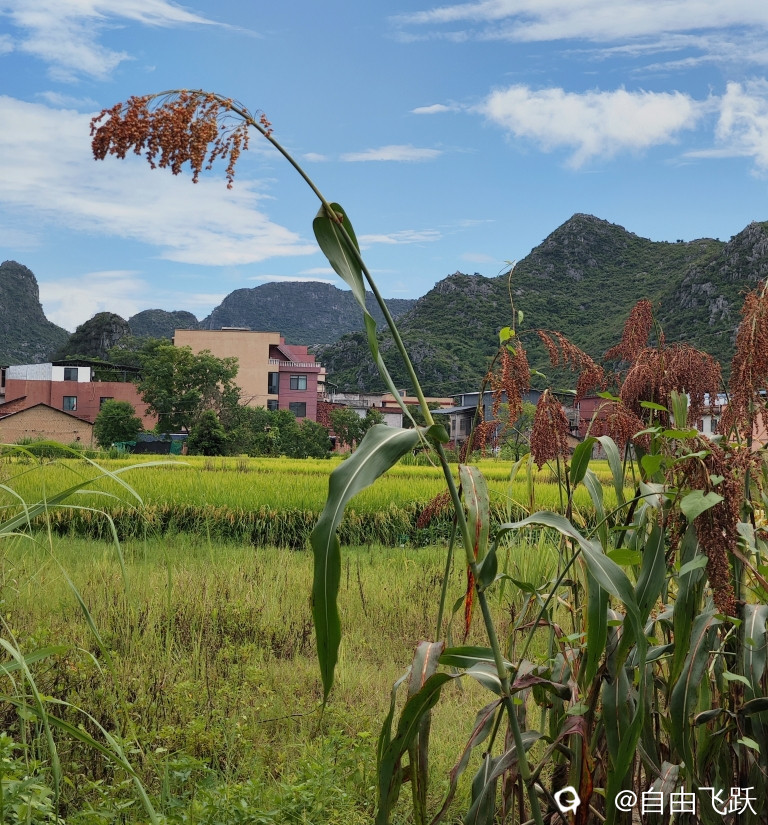 桂林西二环的青青田园配上红高粱,有特别的韵味,跑进红高粱地里头捉迷藏,也非常有韵味,可以返璞归真保持童心。