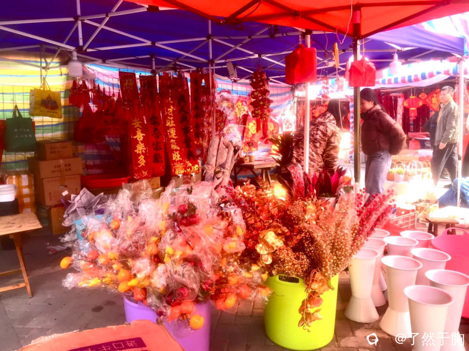 市场主要经营销售各种糖果,花草龟鱼,对联灯笼等。一开市,就人流如织 ,十分红火热闹。