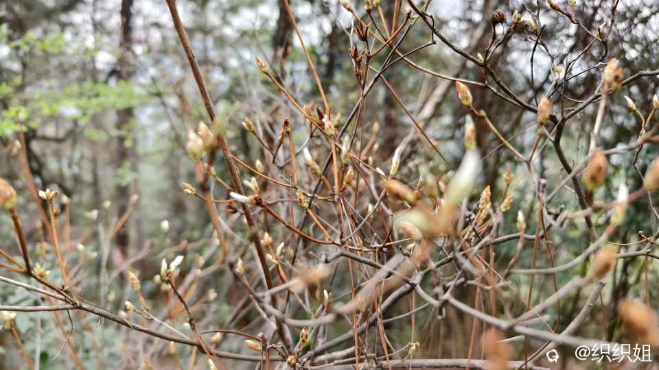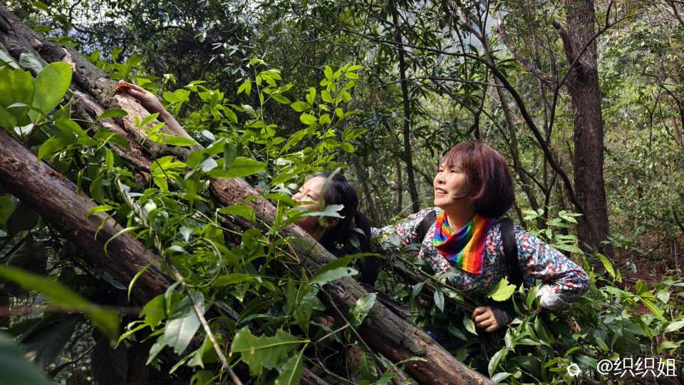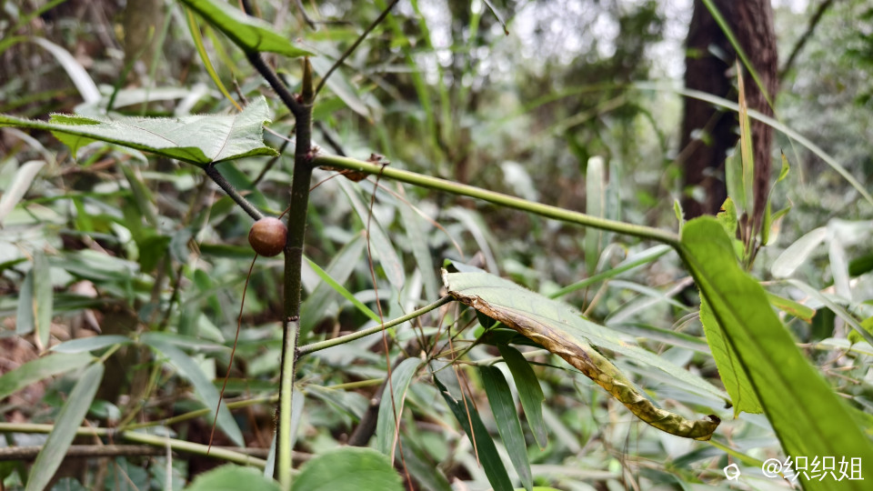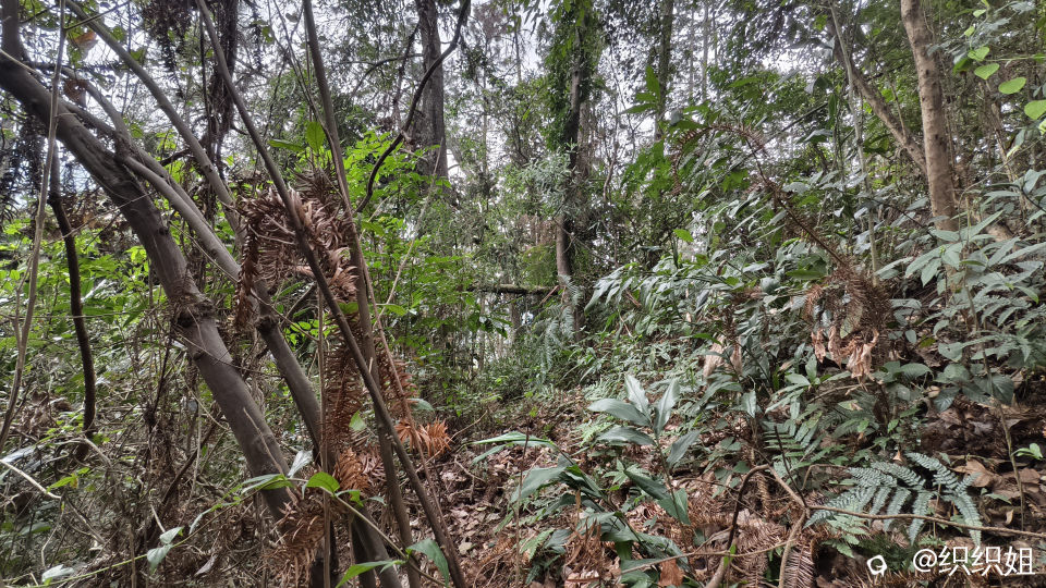 可是,牵牵莽莽的杂草,旁逸斜出的荆棘,横在眼前的大树,上山路上的陡坡……一点点消融我们两个女生跟风上山的意志。