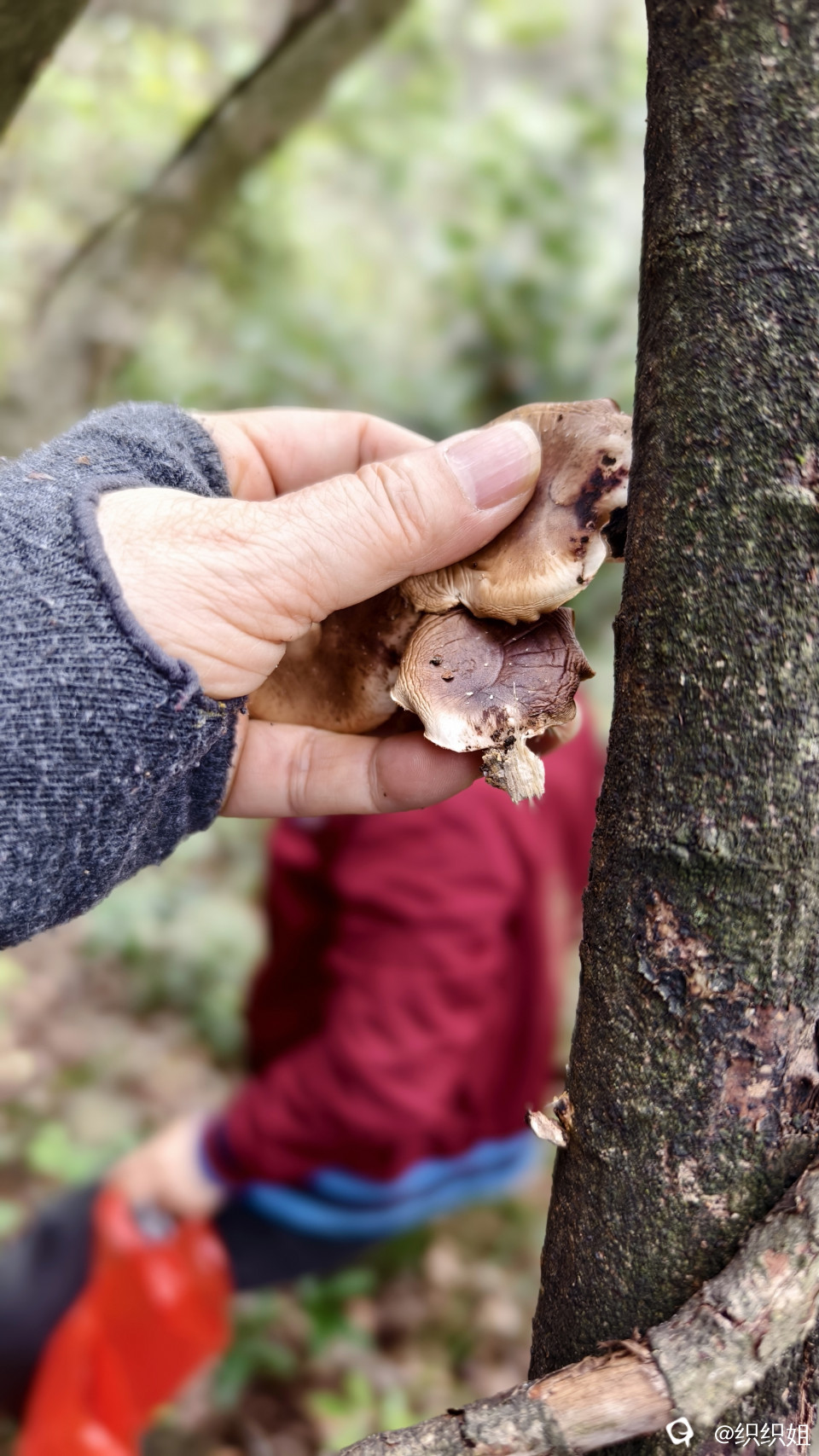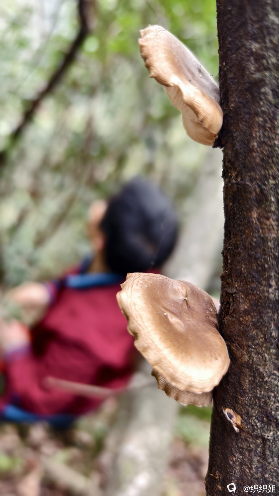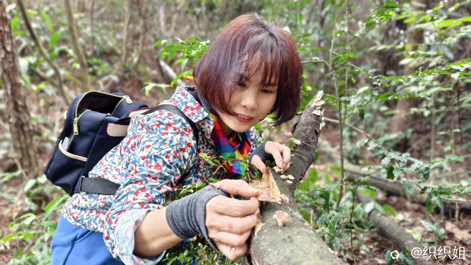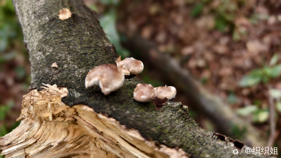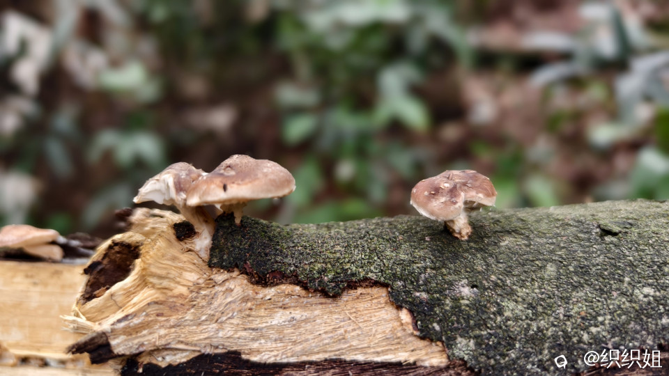 “看到了,看到了,这里有香菇了。”同伴的惊喜吆喝,就像是给我们这两个拉后腿的女生打了鸡血,快速前行,不顾疲惫地回应:“莫摘,莫摘先,我们马上到。”