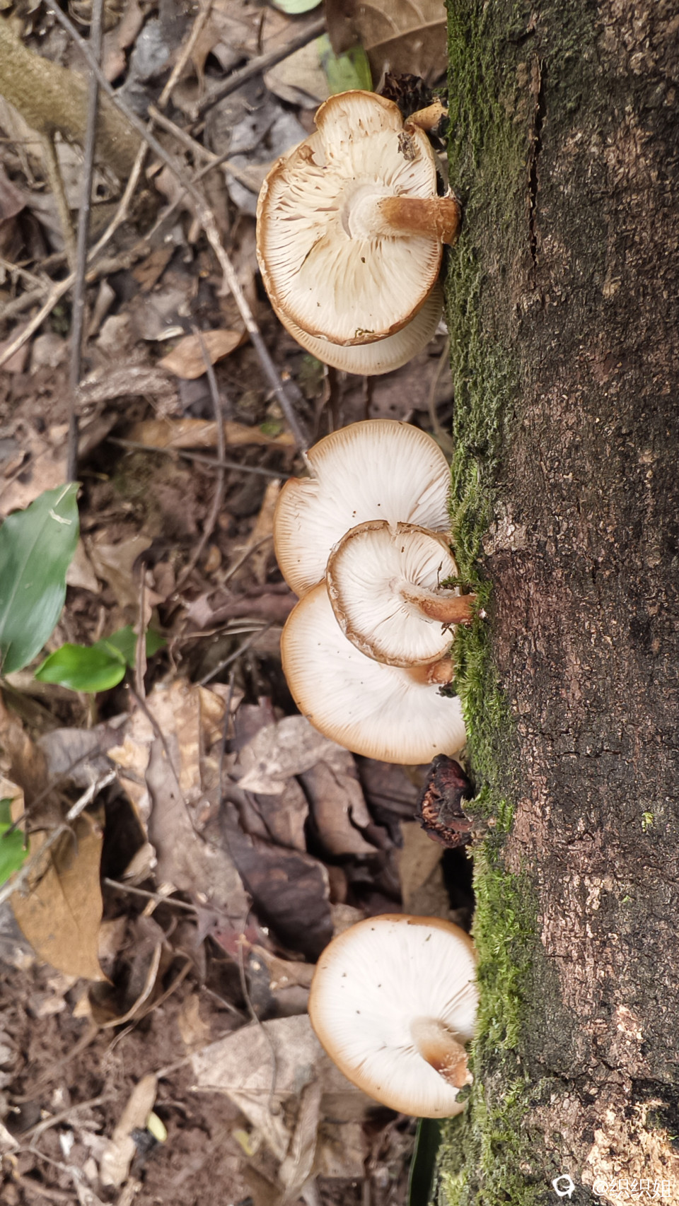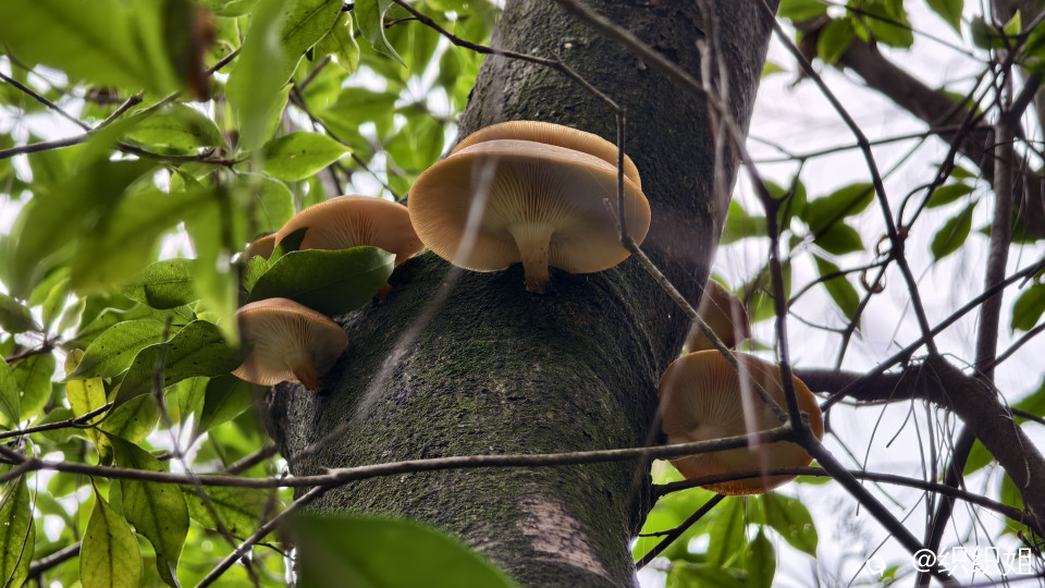哦豁,那些野香菇,就像大自然精心放置的小伞,或藏在腐树上,或横在腐树下,星星点点。