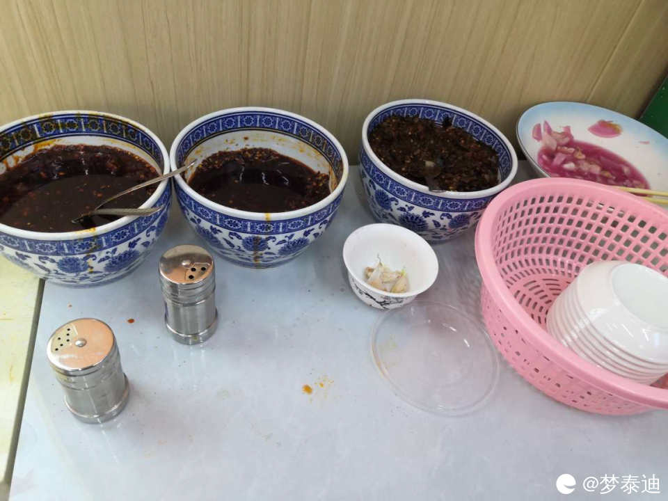 香菜葱花已放,自选台就只剩各种辣酱,胡椒,花椒粉调料了!