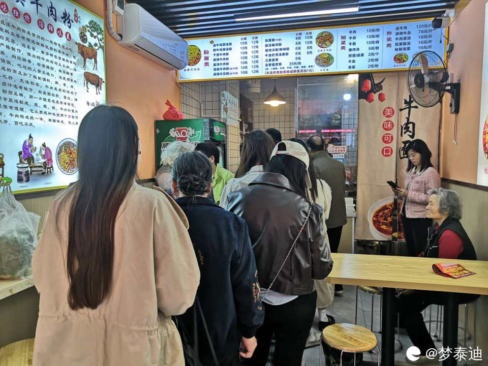 店内面积不大,排队吃粉却也井井有条。