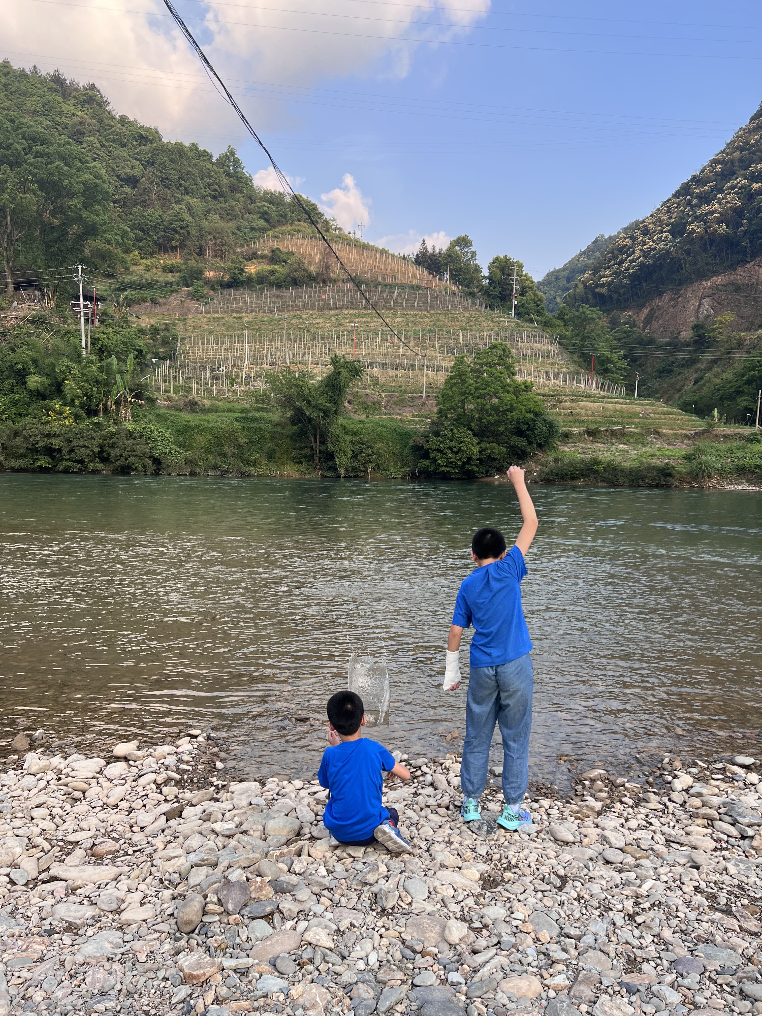 这一次是来一个表舅家吃饭!房前山青水秀,孩子们玩得很开心!