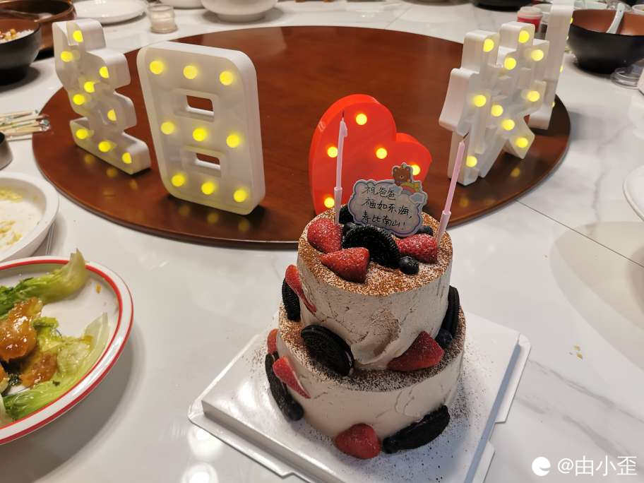 有孝心的大表姐,为她爸爸也就是我的四舅舅定了个两层冰凌淋蛋糕。