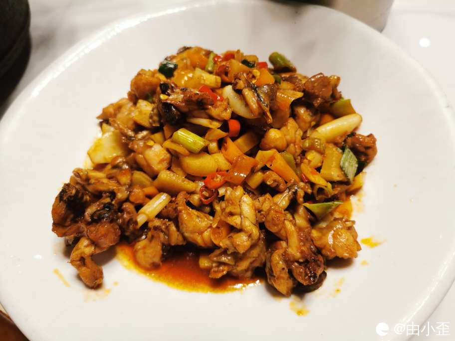 生炒子姜田鸡,子姜生脆而微辣,爆炒后的田鸡非常入味,滑嫩可口。