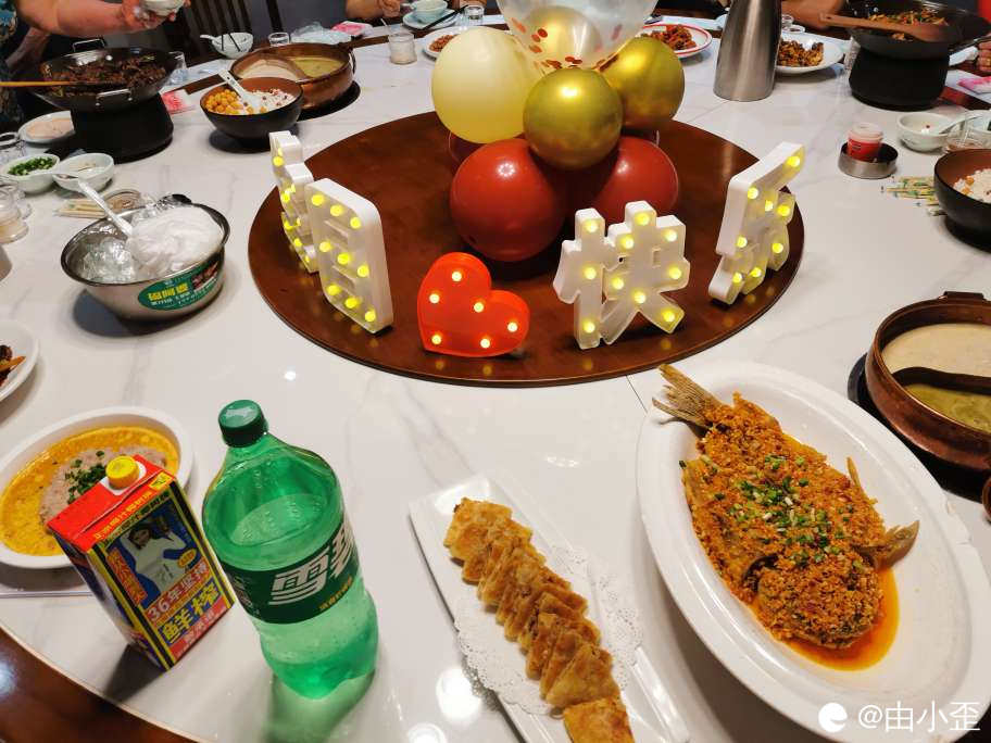 炒鸡大的一张桌子,氛围感拉满。