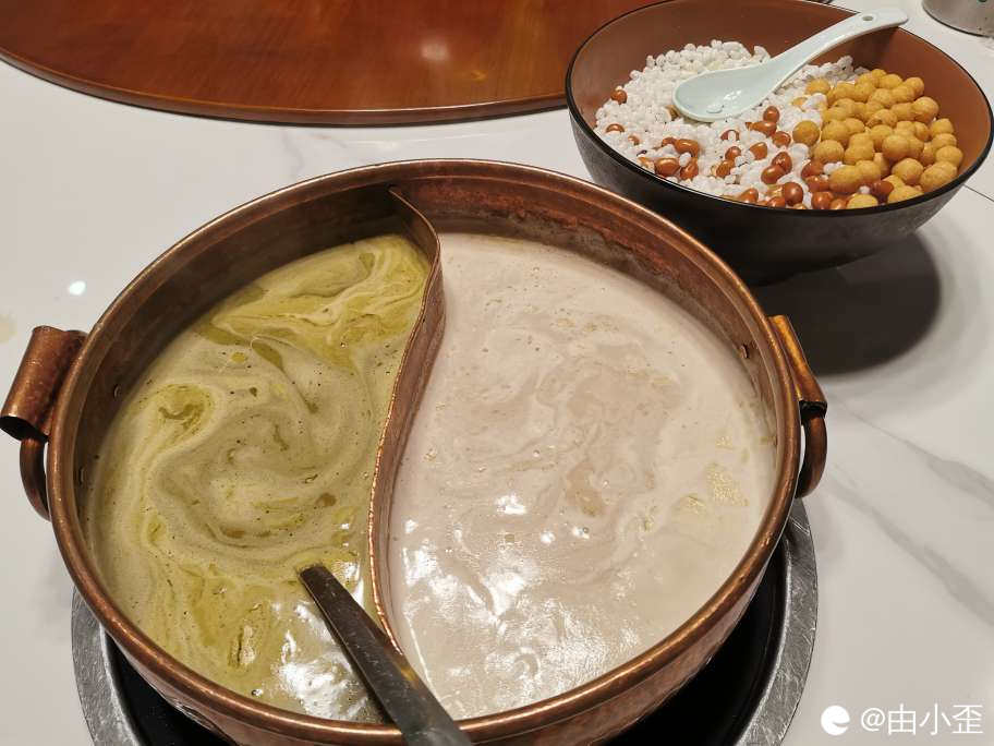 鸳鸯油茶,茶叶和花生各半锅,尝了他们家油茶后,连喝了一辈子油茶的老家亲戚都说这油茶真好喝。