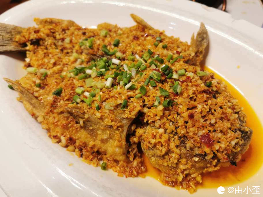 脆皮蒜香鱼,蒜香鱼特别香特别脆,其实一点都不辣,老人家也吃得动。