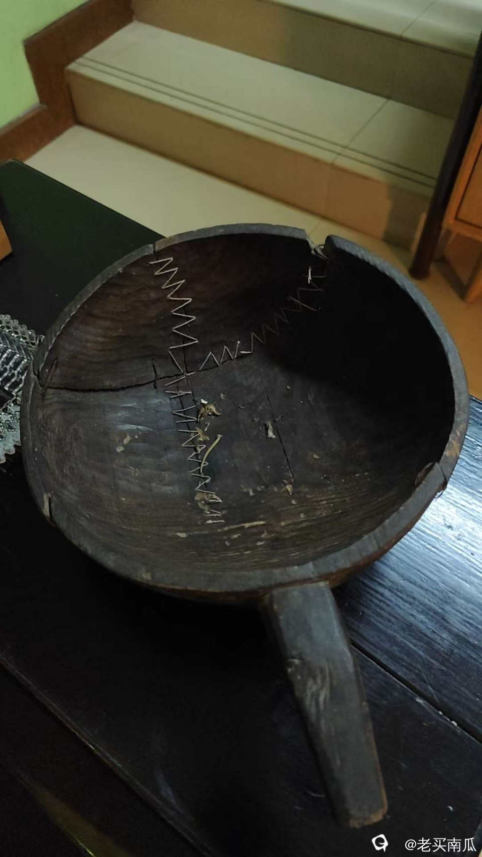 这是我当年父母留下的磨豆腐用的木勺子(我们家的是醋水豆腐,这个勺子就是用来舀醋水调节出豆腐率和舀豆腐),看着用线缝缝补补的样子,父母勤俭持家的形象依然念念不忘,现在权当留作一个念想。
