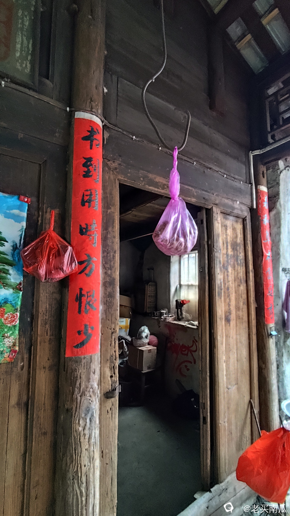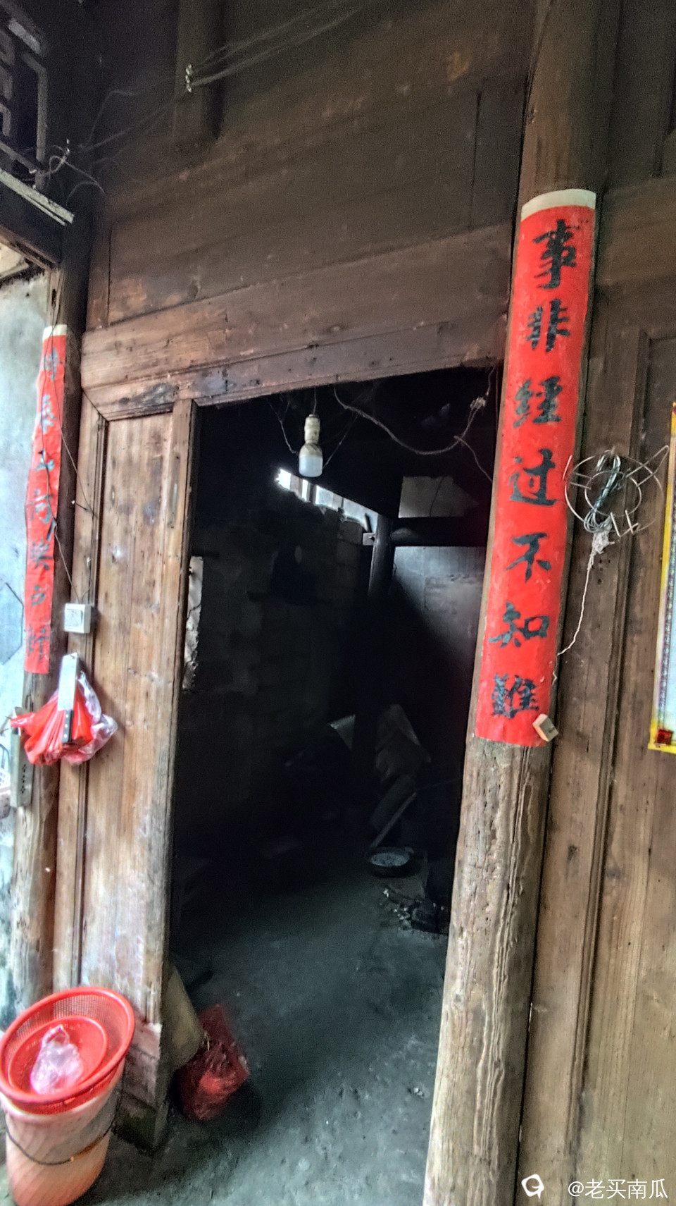 昨天上午正好应朋友相约,决定去重温小时候磨豆腐的感觉。这是个有传承的家。村里人都富裕了,基本上都砌了新房子。但这俩老依然住在老木房子,孩子们都在市区或外地。老爷子是个文化人,他在每一根木柱子上都写有对联,很喜庆的样子。他们住在这个带有温度的房子,我能感受到生活的惬意。看到墙上大字“热爱生活”了吗?