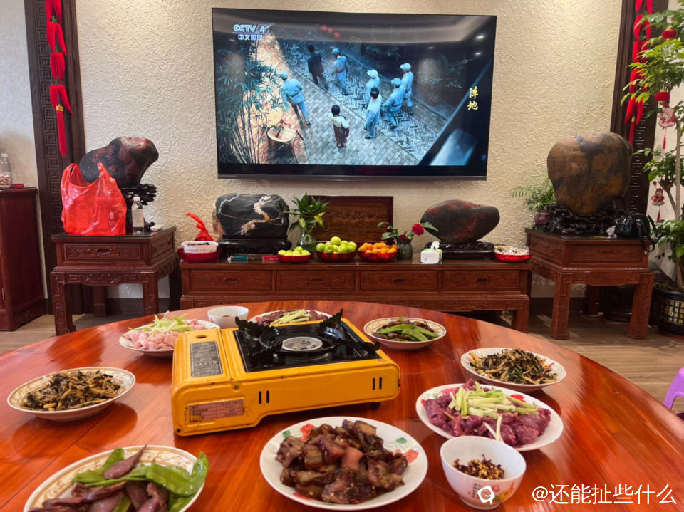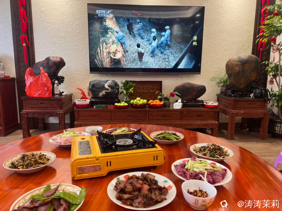 备餐中,电视里正放着在桂林拍的电视剧《阵地》 ,更了解桂林抗战文化城背后的故事