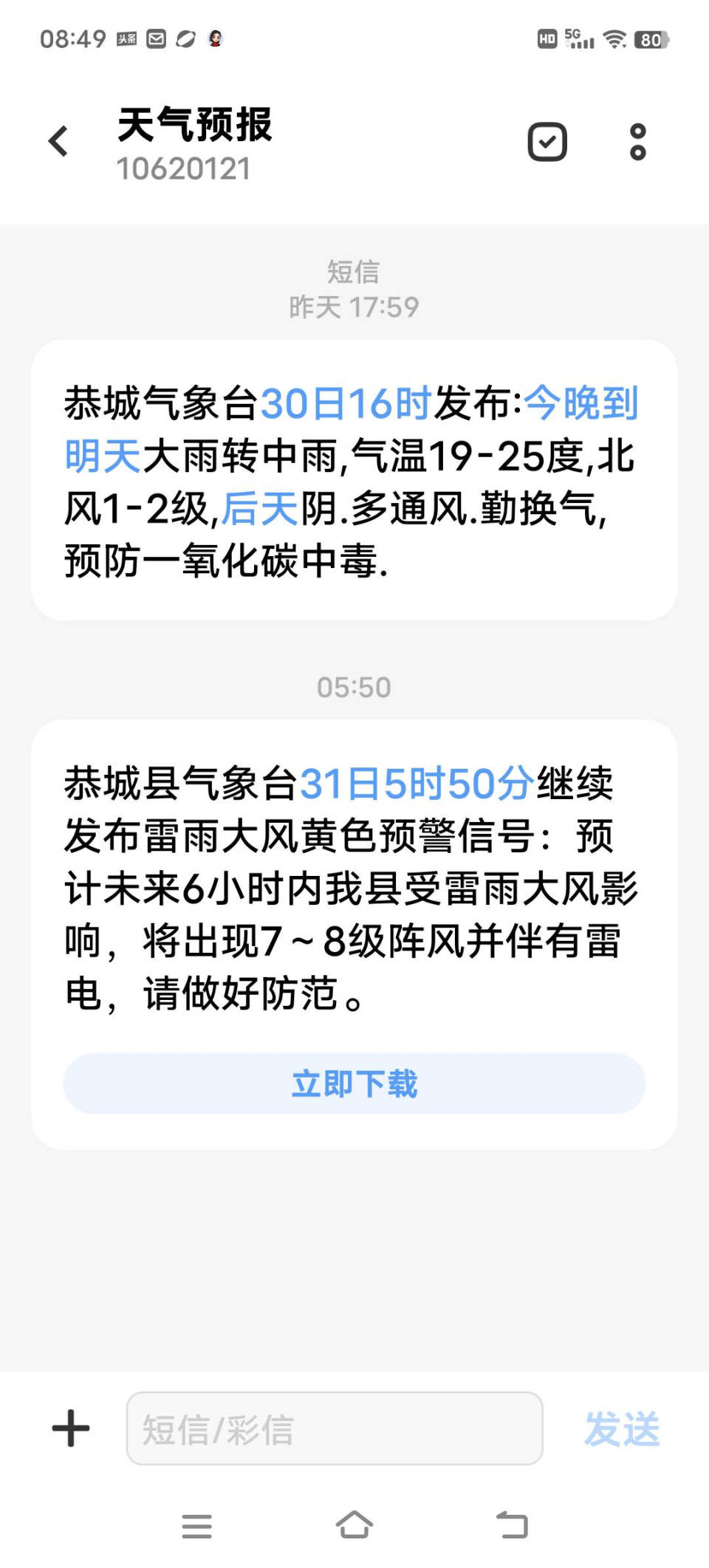 自昨天午夜开始,恭城瑶县气象局,已连续发布多条雷暴大风气象预警;在进入今日凌晨时段,就听窗外有大风刮起,有闪电雷鸣声,随后暴雨由小而大就狂降。