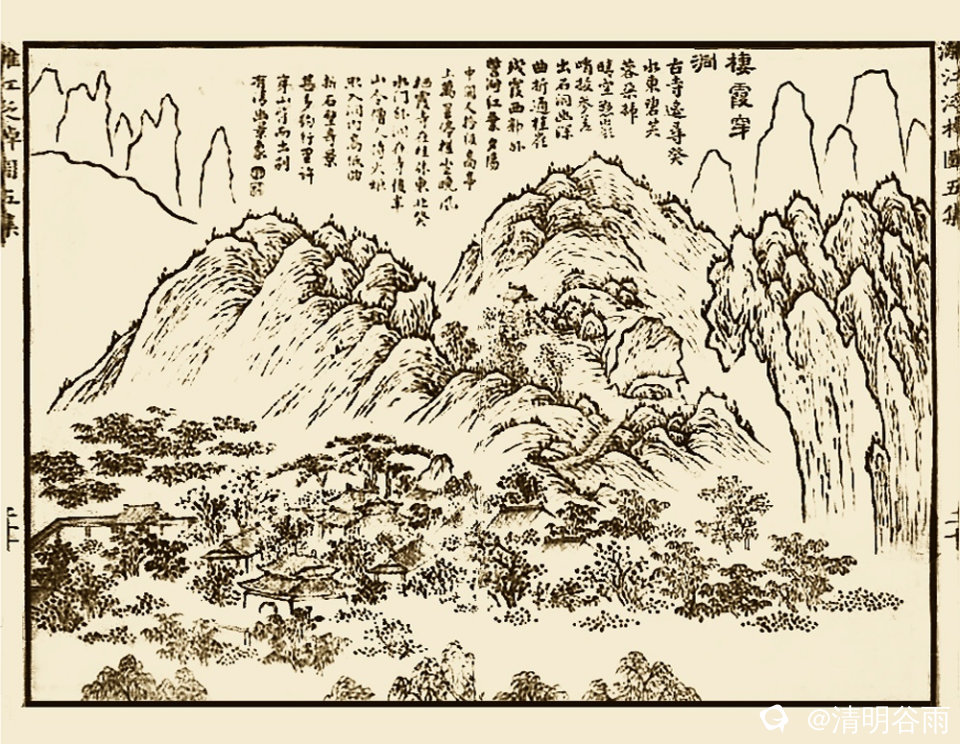 桂平诗人黄体正,嘉庆三年(1798年)乡试解元,曾任桂林府训导,作有《壶山看桃花饮雷酒人墓放歌》,诗刻月牙岩。诗中有句: 融风忽吹三日晴,桃花李花开满城。 水东门外水波绿,人在绿波桥上行。 千寻铁缆,逶迤浮梁;青山环锁,绿波桥上。诗人跨浮梁渡漓江,浮桥上下,船影波光,两岸突兀的奇峰秀色倒映在一江春水之中。诗人们眼前展现的是一幅变幻莫测的桂林山水图画。 象州诗人周尚文,字释香,附生,保举出仕,官广东巡检,周尚文曾流寓桂林,作《踏莎行.桂林东郊看桃花》词,词中有句: 云色拖蓝,波光流素。 浮桥雁翅横江渡。 手携红友踏青来,萋萋芳草销魂路。 词中的漓江东渡之处云色波光,红衣芳草,确为销魂处。诗中称“浮桥雁翅”,分明是说永济桥在江流中曲折伸展,如同大雁展翅,为清人古画中的浮桥写实。