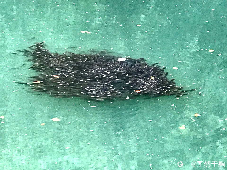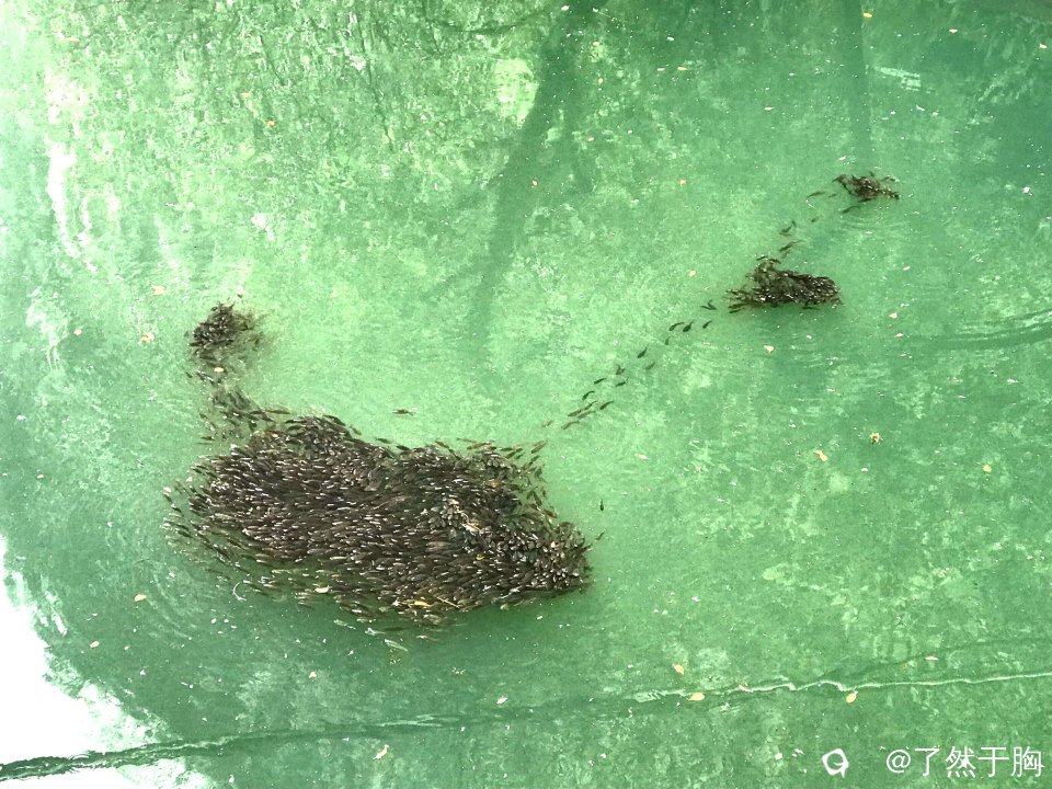 刚放生不久的鱼,傻不拉几的,不熟悉环境,喜欢徘徊扎堆。