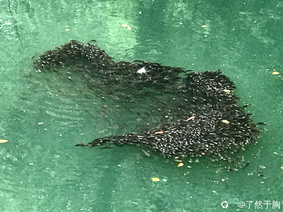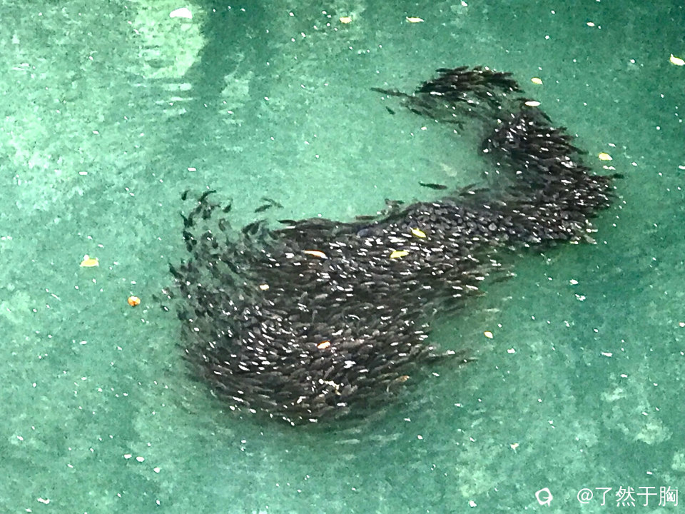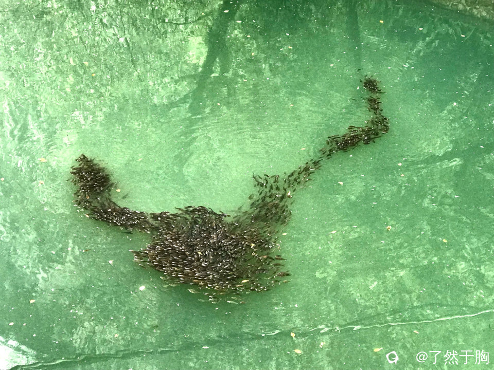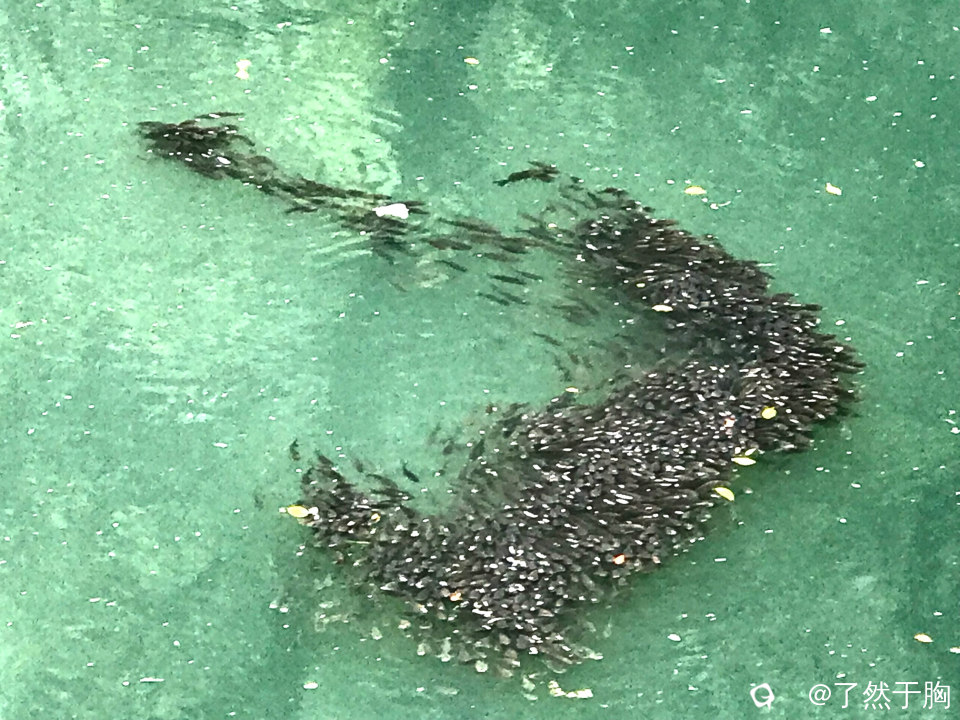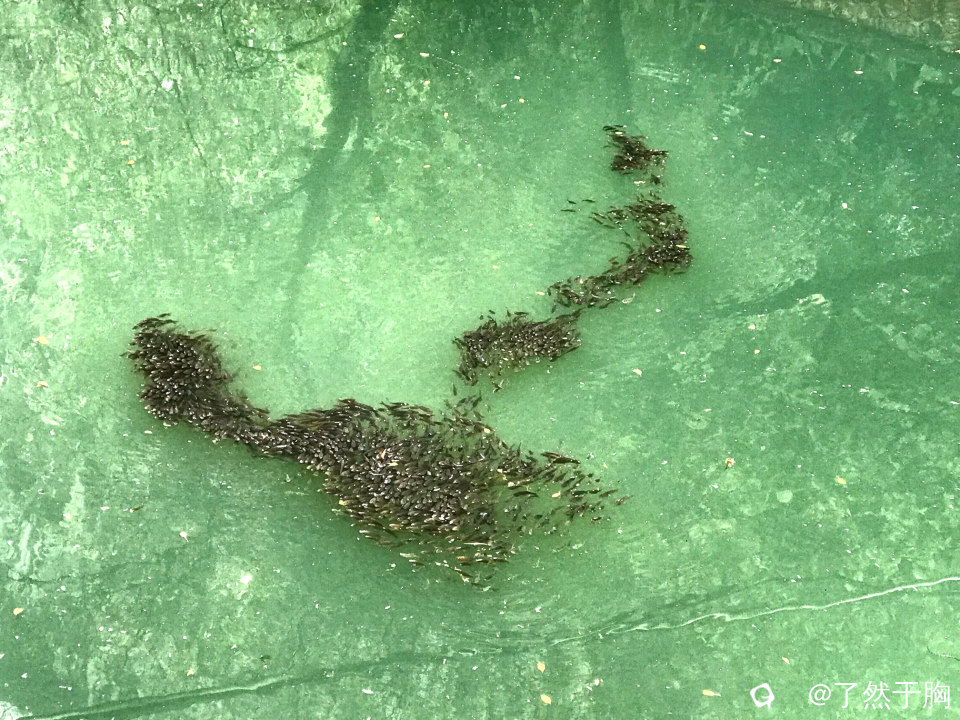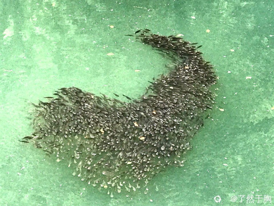 但见河面之上,鱼儿们聚集成群,集体游动,犹如大雁南飞,随着时间的变化,形成形态各异的阵形,吸引了众多市民的驻足观赏。