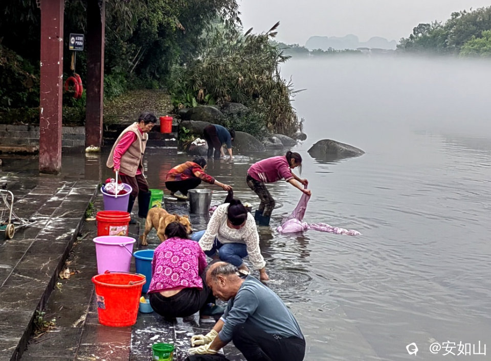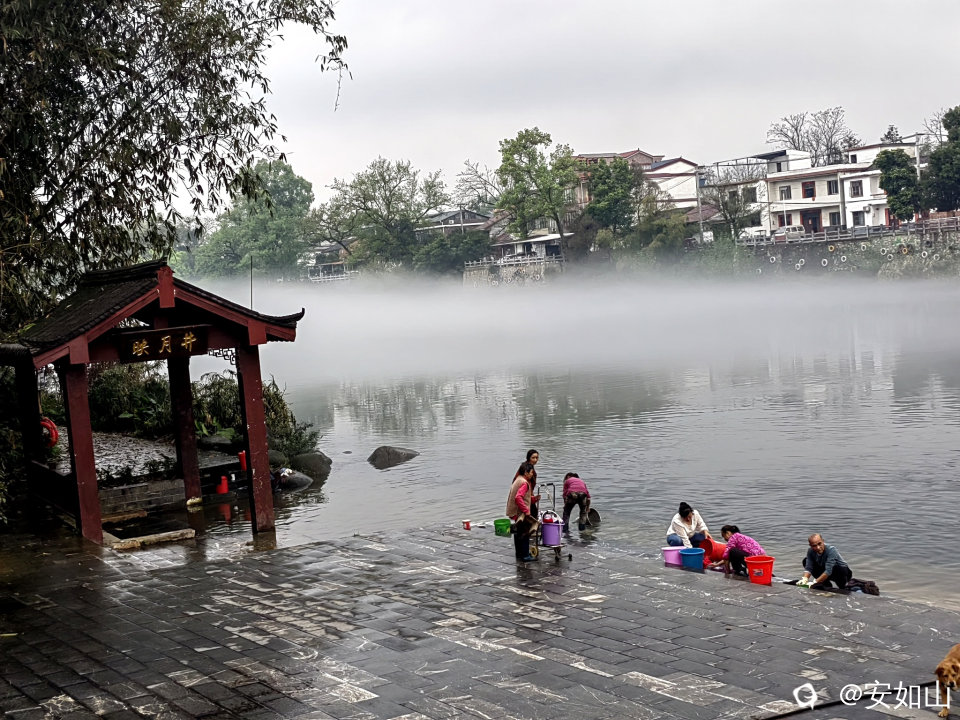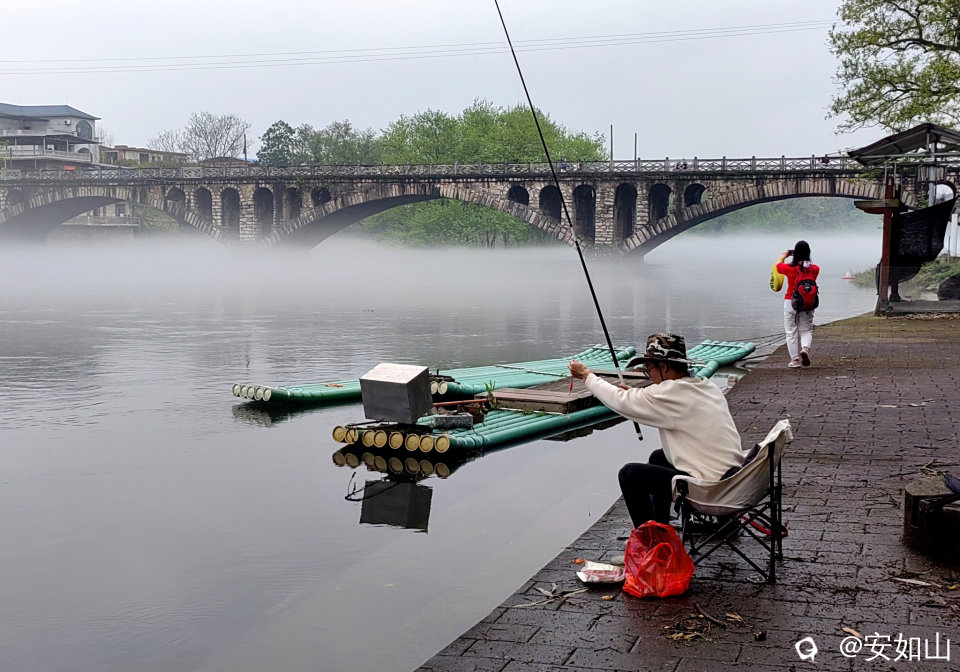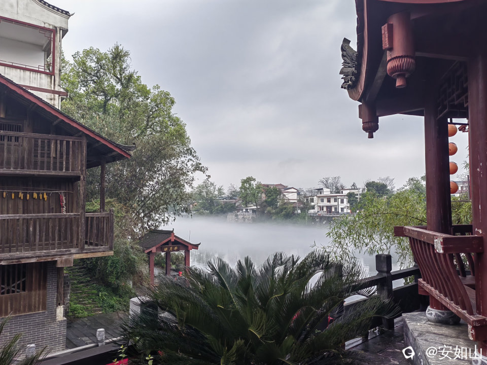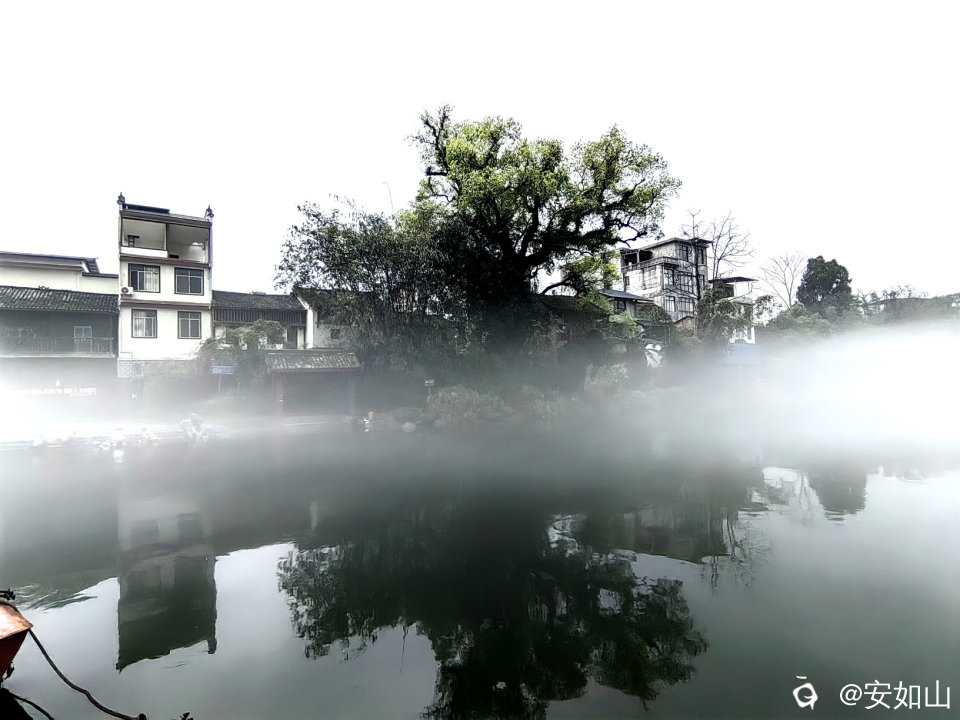 甘棠江上的平流雾确实漂亮,也难得,我记得耍像机的都知道有个湖南郴州小东江,那里的平流雾常有,一条不大的小东江,一条渔翁的钓鱼船,摄影大师或大湿们就会拍出得奖大片,今日的甘棠江甩小东江二条街!我走在江边道上,两岸风景让我心情大好,拿个手机,拍个不停,眼前江景走心入诗,正是“水光潋滟晴方好,山色空蒙雨亦奇”,走进江边树林便“云深不知处”,看江面独舟“野渡无人舟自横”