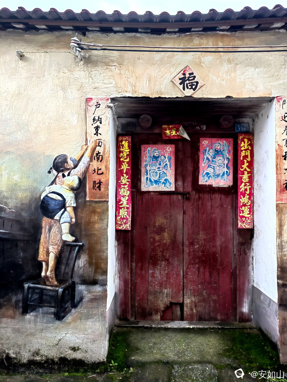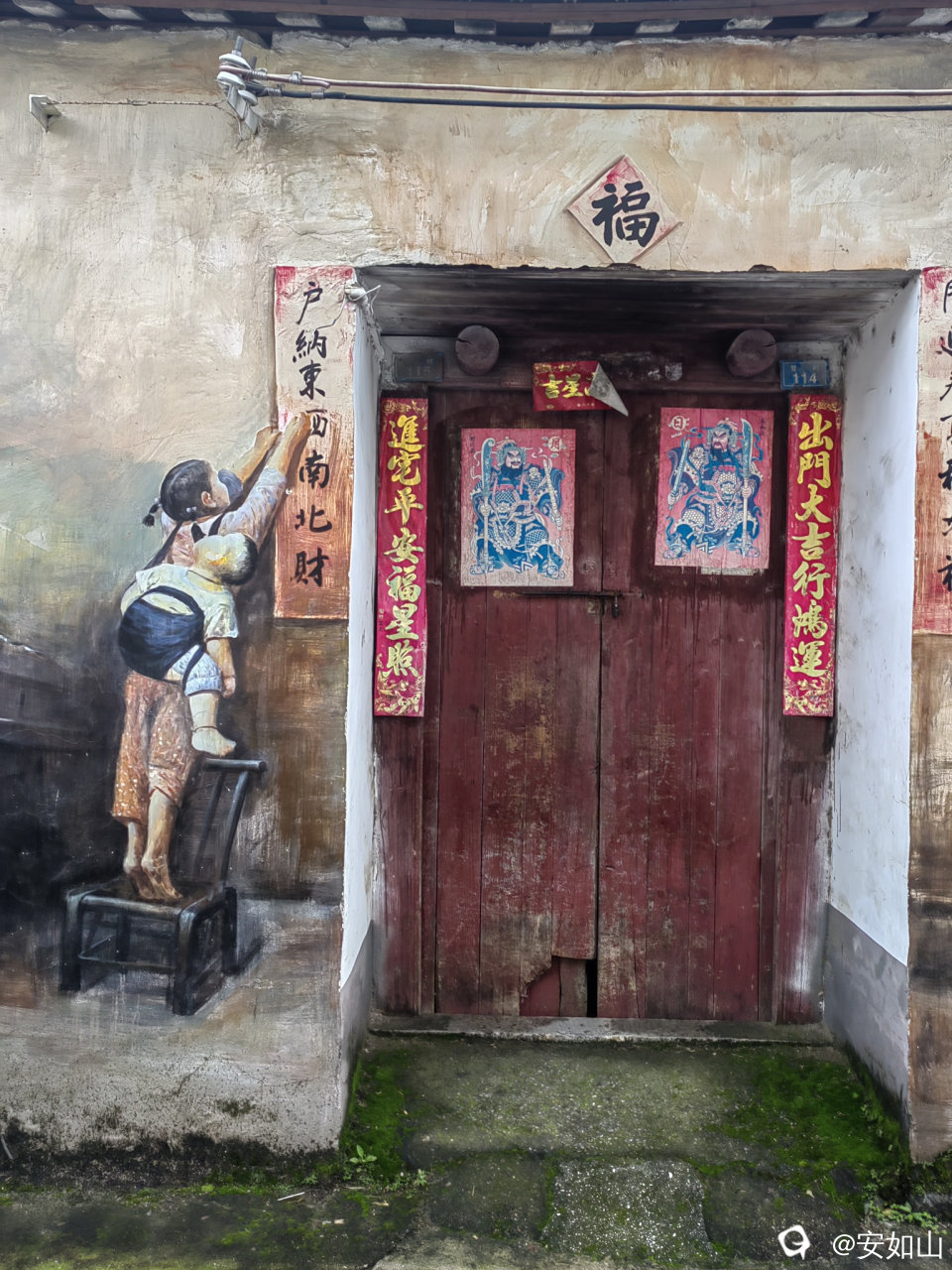 甘草村的壁画果然比路上看到的壁画好些,我学过画画,甘草村里的壁不像土著,至少接受过西洋画教育,线条谁确,画面透视关系还成,人物画脸部也不像土著一样,画得像一家人,色彩虽简单点,但大致准确,内容也应景,有股农家味,我肚子空空,这些画我无暇细品。甘草村我十多天前来过,风景还是不错的,也发过一帖,大家有兴趣可以点击一笑