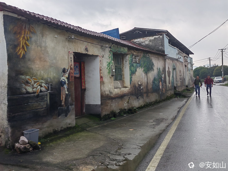 我们沿着村道往前走,两边种着各种柑橘菜蔬,也许是近日雨水好的缘故,路边百花菜,三叶鬼针草,蒲公英,地地菜等野菜长得极好,甚至还有雷公屎!同行的大妈且走且摘,收获甚丰,路上零星的房屋画着应景壁画,我尧有兴致的欣赏着这些壁画,步子也慢了下来,有画的房子门牌上写的是甘村,带队刀哥看我掉队,嗺我快走,他跟我说,前面甘草村的壁画是九屋一带最早的,也是最好的