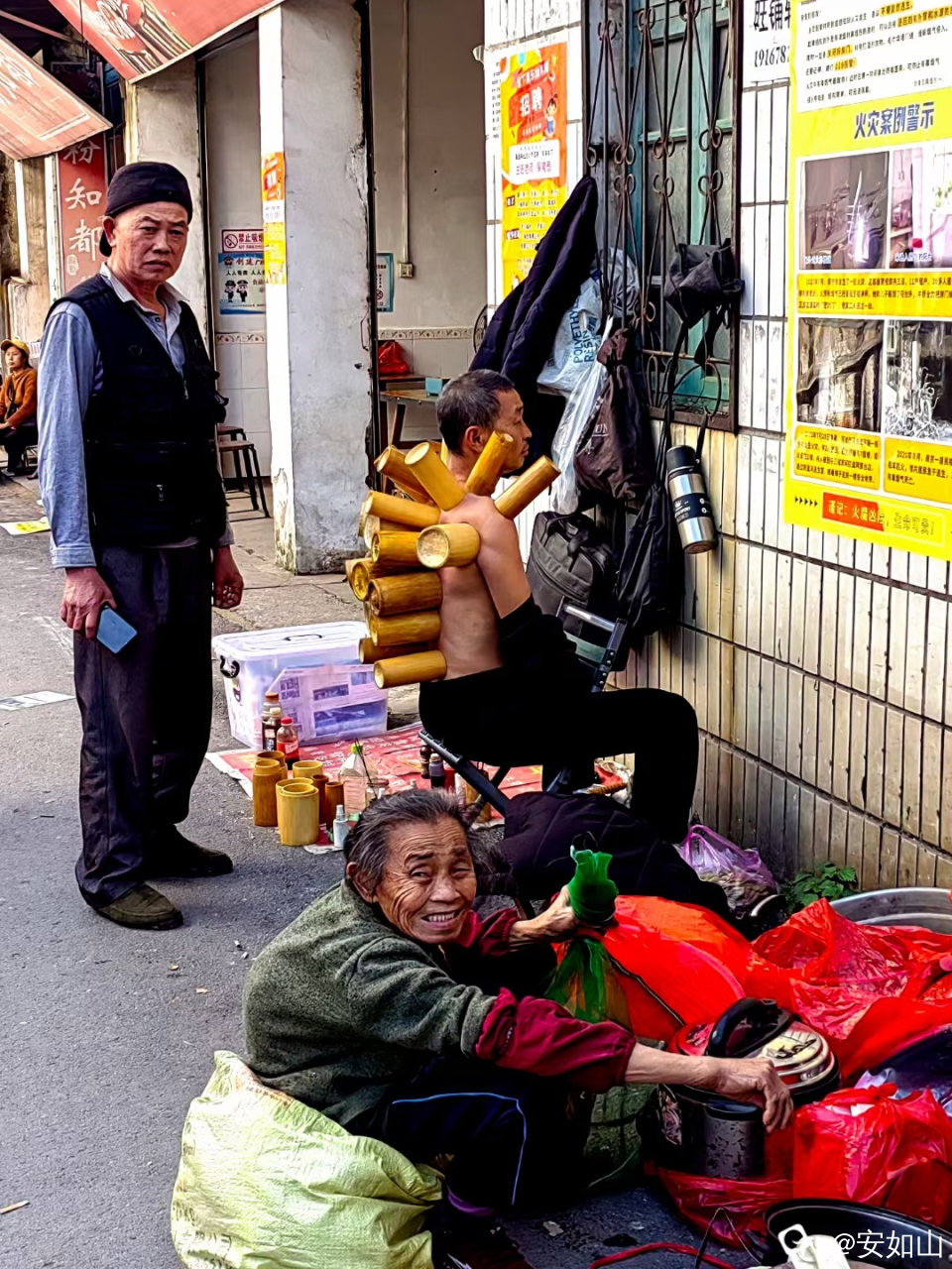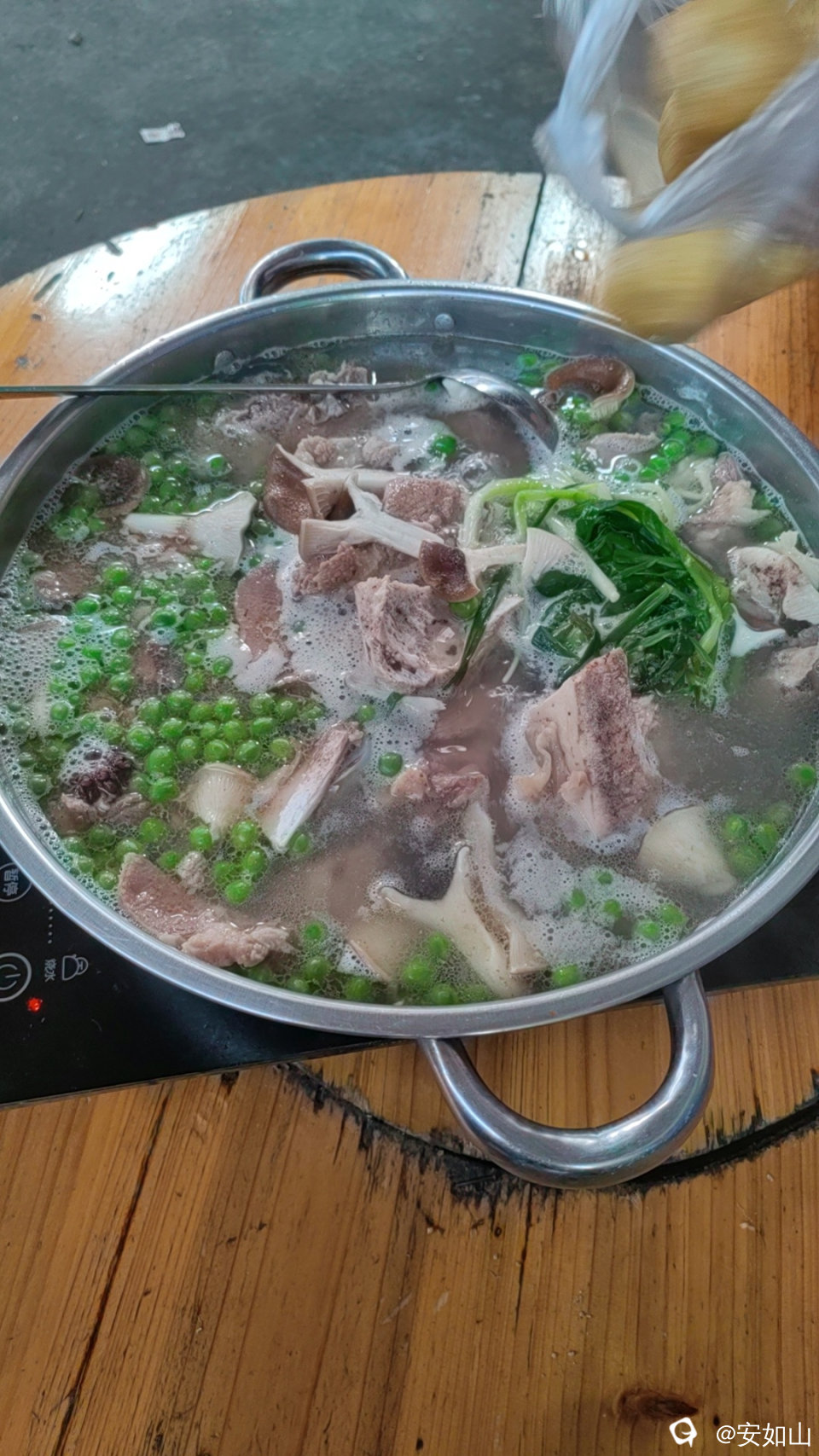 人在九屋圩,我们就按平时套路买大头鱼鱼头,到圩场米粉店加工,也许是我们去晚了,卖鱼的三个摊位,大头鱼都卖完了!我怀疑是不是我上次游记,写了九屋圩吃鱼攻略,所以会卖光!我们只好在卖肉的摊买了大骨和九屋圆子,到米粉店加工,不久老板娘端上来好大一盆,我们烫着徒步摘的野菜,味道真美,两人努力吃完,一瓶矮炮加二人加工费,一共20元!呵呵,又一次愉快的徒行!