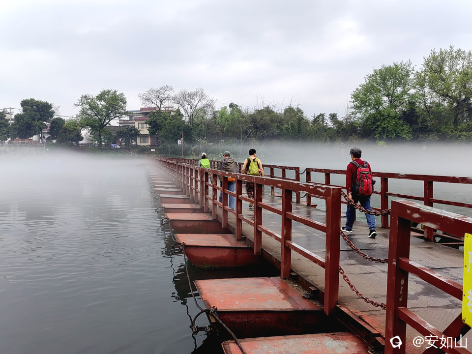 我们徒步从双洲村甘棠江浮桥起步,刚到江边我就被甘棠江面的平流雾震惊到了,江面一道浓雾形成平直的白线,江面和天空清晰可见,这是难得一见的天气现象,也是喜欢摄影的人的好福气,我兴奋的走下码头,走过浓雾中的浮桥……