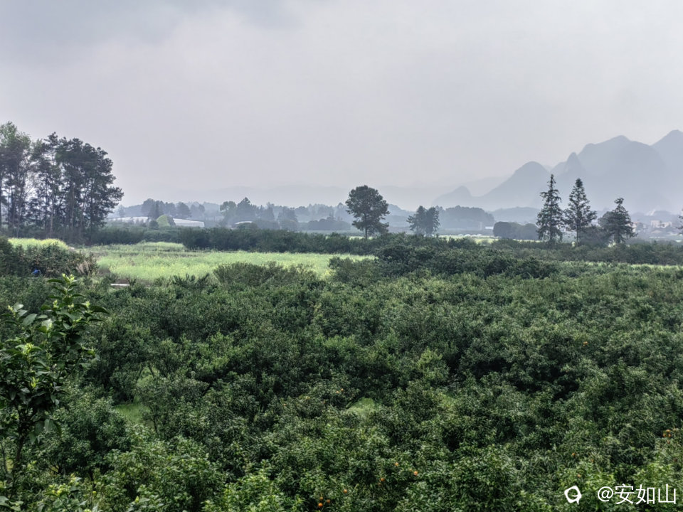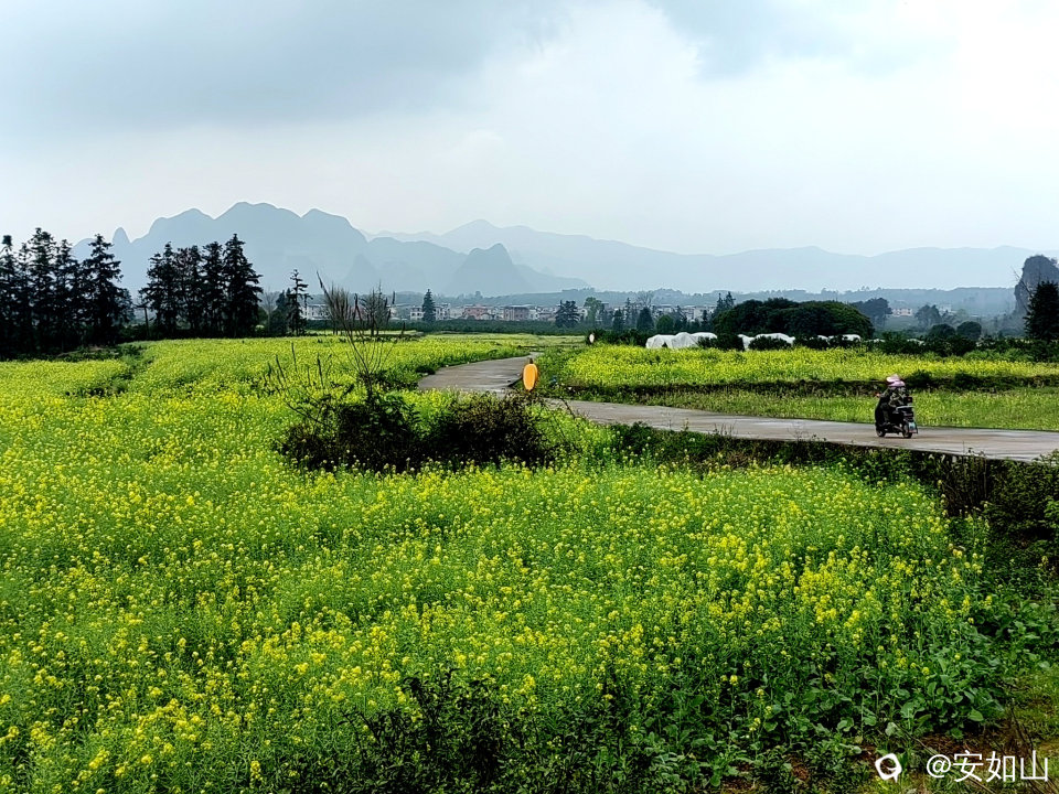 (接上)青狮潭干渠的水还是干的,也许是没到放水季节,我插队时,我们村有水稻田一千多亩,就是靠青狮潭水灌溉,因此我们村每年都会被派义工修水利,后来田地分到户了,大概没人修水利了,没几年水渠就断了,这些水田都变了旱地。我的印象中这些菜花地也是水田,恰巧在水渠遇见三个摘果子的果农,我们便搭上了话,一老者讲:农民苦,种水稻粮价十几年没涨,哪搞得到卵钱!一徒步队友说:现在不交农业税,种水稻和粮食收购有补贴的 ,哪不划算?老者说:一百块一亩,卵用!我说:现在国际大米价不到九毛,如果国家进口,不补贴,农民不是更难?老者回:操!他指着渠道边的一片地说,这些地去年公家岀了钱恢复的水田, 还不是没人种 !其实这种小块分到户,不用机械化种植,肯定是亏钱的。呵呵,我是不是闲操外婆心了?这楷的油菜花面积大,油菜花田高低有层次,有远处连绵的长蛇岭衬托,格外好看,如果搞个无人机拍拍,没准出个桂林大片!