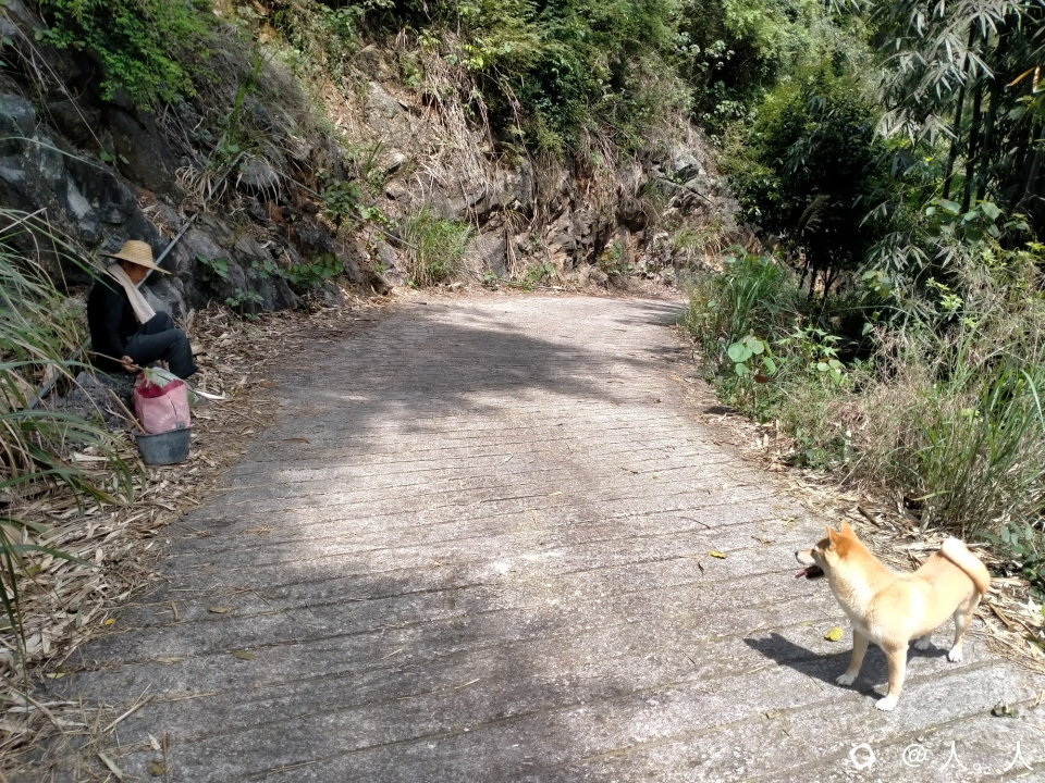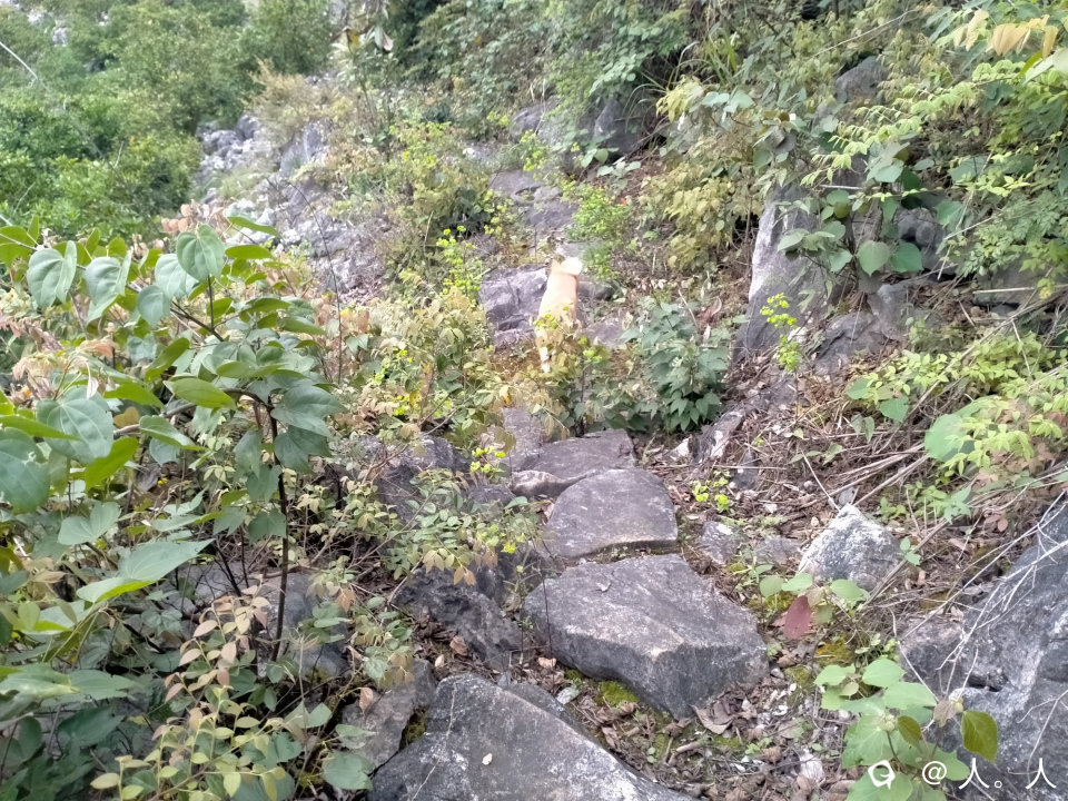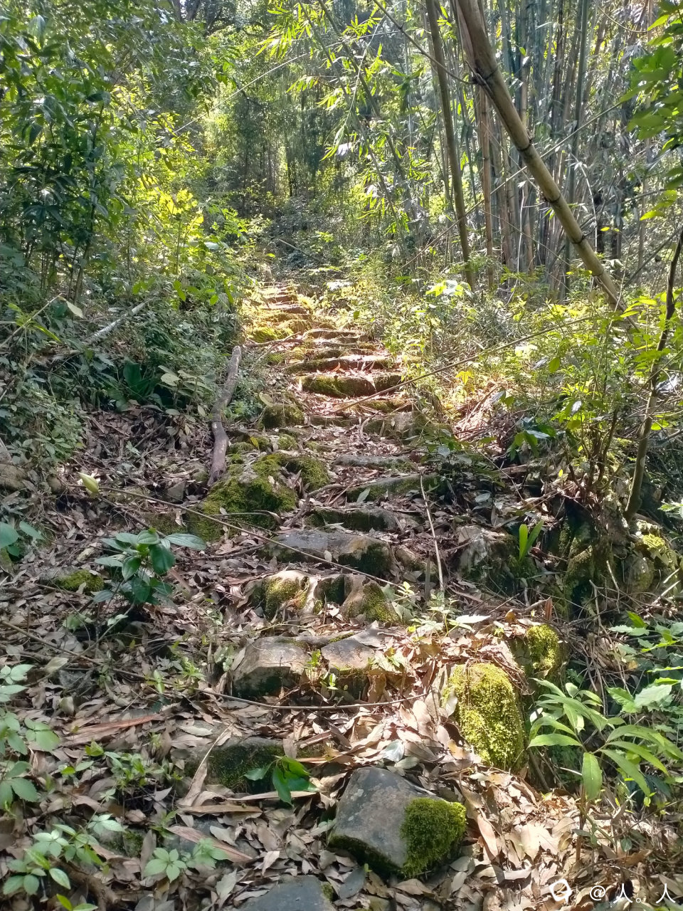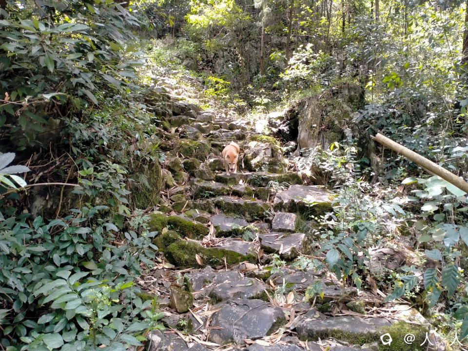 路边杂木生长太多,导致石板结了很多青苔,湿滑得很,撤退。