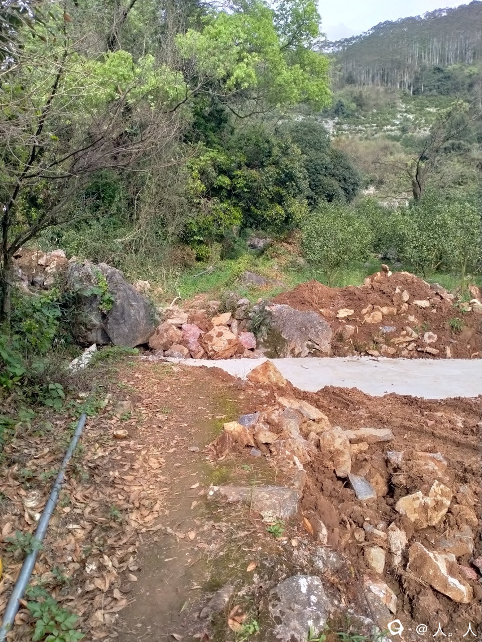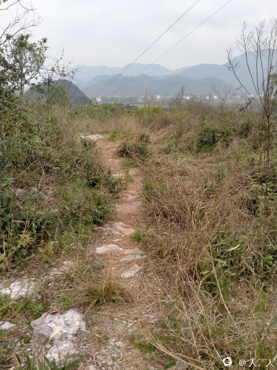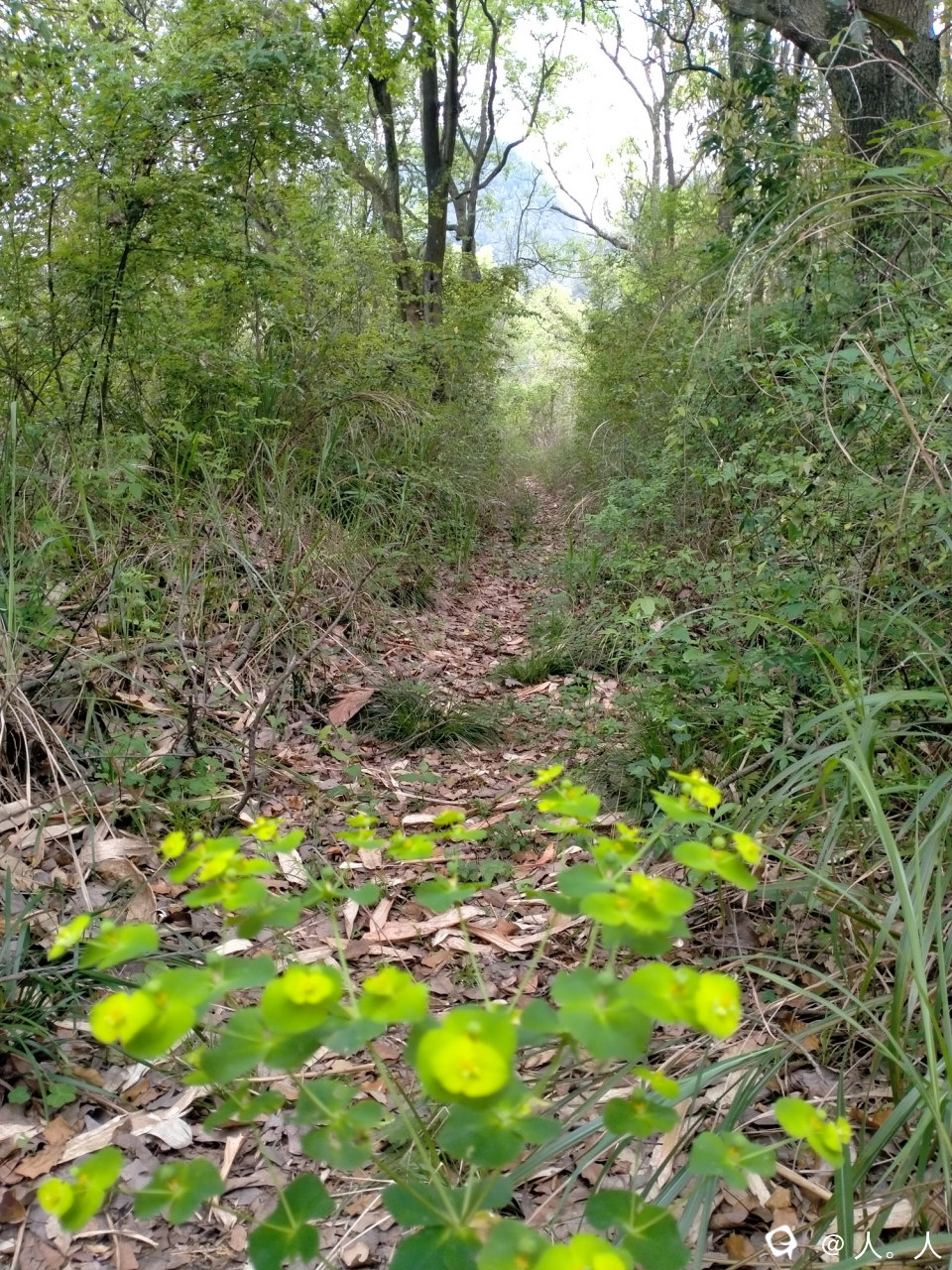 路边杂木生长太多,导致石板结了很多青苔,湿滑得很,撤退。
