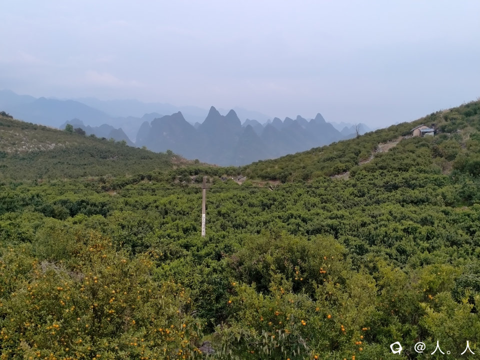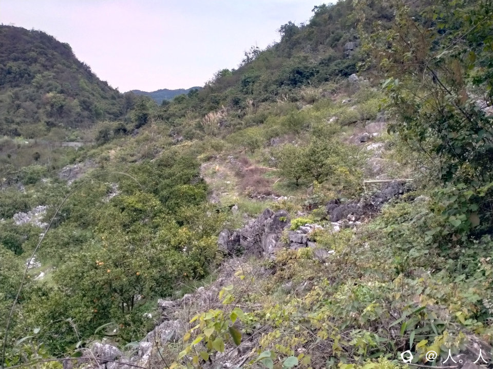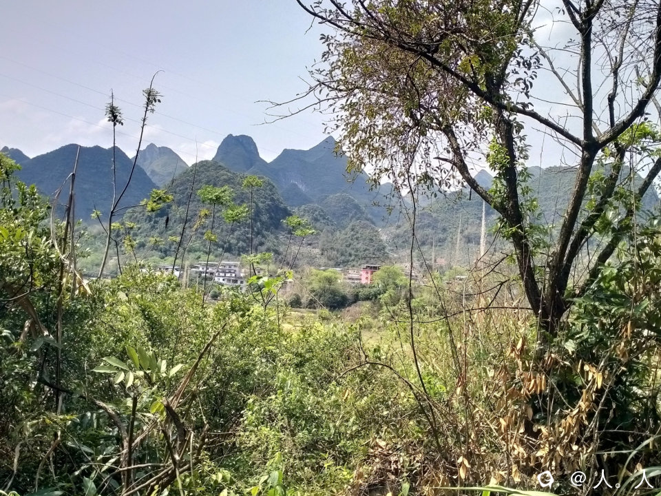 潜经村北边是大山,西边是漓江,东北方向的两座山之间有坳口,在远处观察上面还有大树——这说明是有古道通行的。