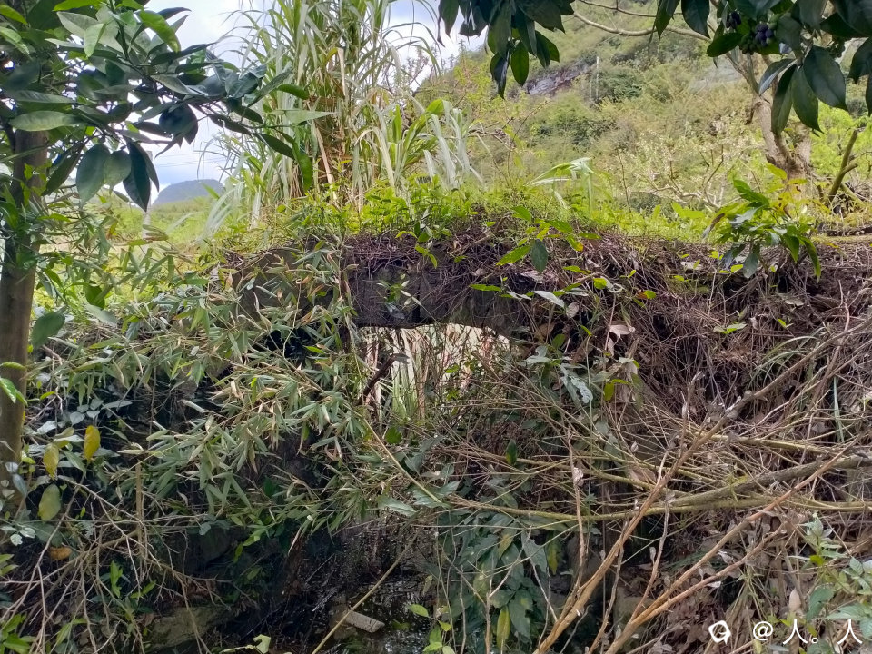 这座古桥不仅位置低矮,而且茅草特多,如果不是在侧面的远方,很难看出。