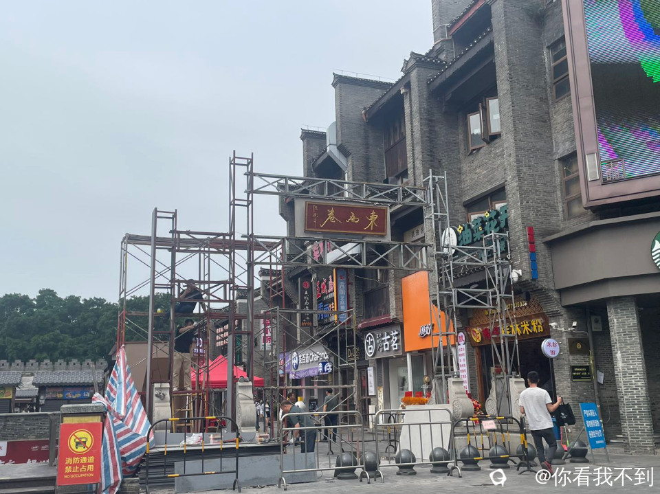 去十字街路过东西巷,发现东西巷大门已经被拆得只剩下骨架了,从左下方看新材料是乌青的板材。以前一直以为东西巷的大门是用石材堆砌出来的,这次才知道是通过板材贴合在钢结构上的,这样挺好,方便又容易更换。