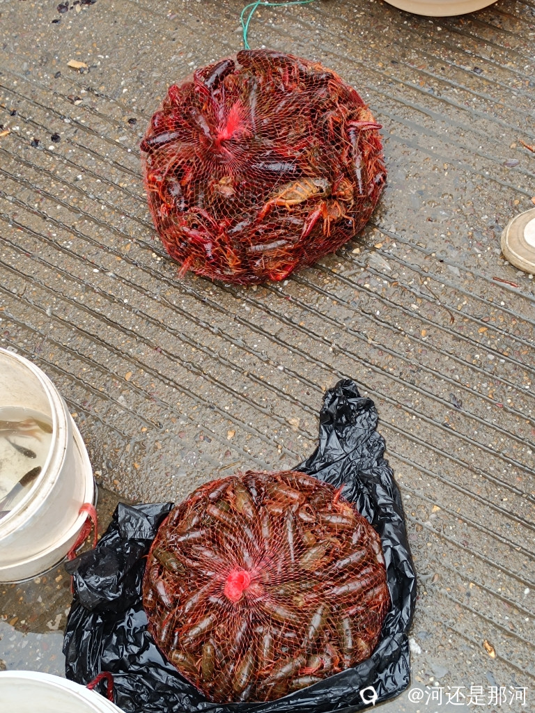 哦豁,十点了赶紧买龙虾去,今天龙虾还有很多摆在地面上,有用网兜兜着,有用盆盛着的,十点多了,有些急着回家的摊贩就吆喝着便宜卖,我想此时捡漏正合宜,看龙虾个头还行,问价格说7元一斤,立马还价5元车成交,一共十一斤,老板说他还有四斤左右的田螺10块钱给我,我觉得便宜就要了,等我要付钱时他又说他还有一只野生甲鱼便宜卖给我,我说老板你怎么给我搞了个套餐呢,买了这个又冒出一个,他非要我去看看,野生不野生我哪里会分辨呢,这只甲鱼大概八两左右,趴在筐里一动不动,不一会伸出头来噗叽噗叽打了几个喷嚏,这那行呢,甲鱼打喷嚏肯定有病了,我不可能买只病甲鱼嘛,老板只好显示一脸无奈。