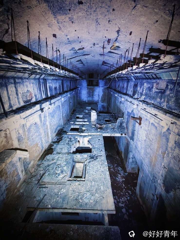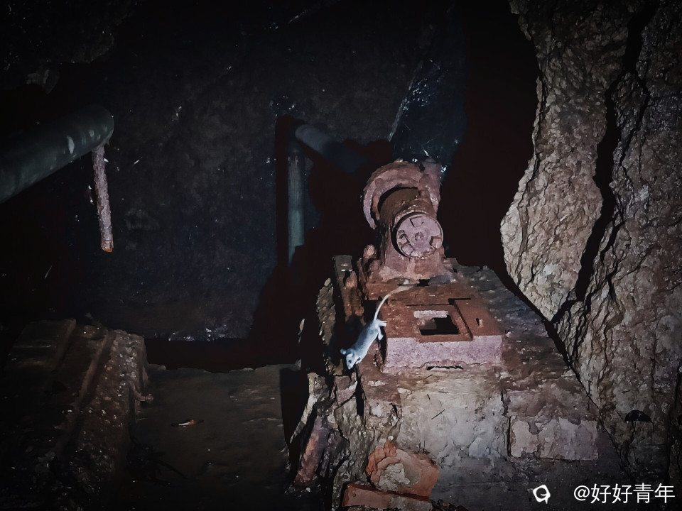 边走边看,沿着洞内狭窄而曲折的通道缓缓前行,这里废弃的电厂建筑,褪色的红色标语,锈迹的抽水泵等遗物逐一映入眼帘。它们静静地躺在那里,无声地诉说着这座工厂曾经的辉煌与沧桑,仿佛能听到当年机器轰鸣的声音,感受到工人们忙碌的身影。在探索的过程中,时有蝙蝠掠过,偶有老鼠,青蛙和爬行虫的出现,吓得我几乎大叫,每一次呼吸都伴随着心跳的加速。当看到洞内一阶梯被钙化成雪白的结晶,散发出那闪闪的星点,令人赏心悦目,为这片废墟里的山洞增添了几分生机与活力。