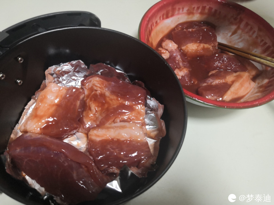 空气炸锅的烘烤时间要多抽出来看看,可以根据叉烧的情况加减时间。