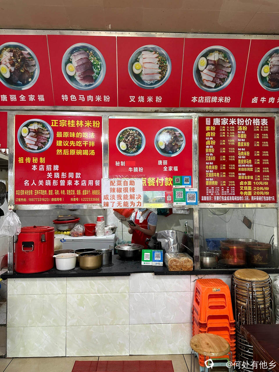 在网上看到了一家争议比较大的米粉店,就是象鼻山公园景区门口文明路那家唐家米粉,号称店里有关晓彤同款米粉,要卖18元二两,桂林人最常吃的卤菜粉也要5.5元二两,比大多数米粉店贵5毛钱。
