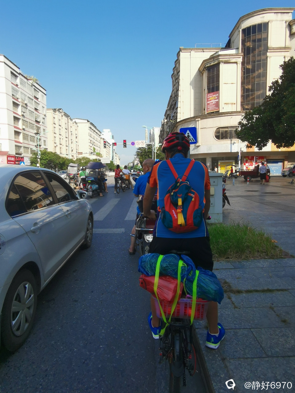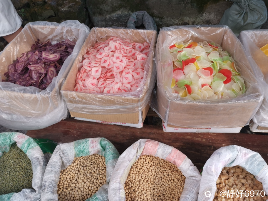 买完香瓜就推着车在菜市场逛逛,看看还需要买点什么,最后买了豇豆,2.5元一斤,买了点小芋头,红薯,豆豉……把我家“宝马”的后座椅放的满满当当。