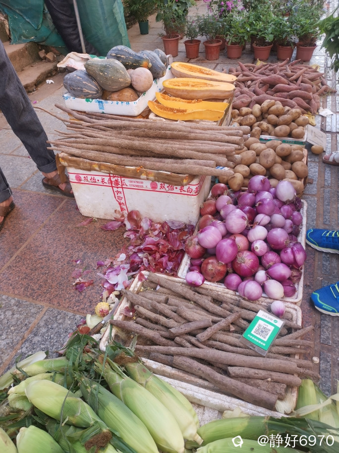 全州有三宝,辣椒,大蒜,生姜。问了一下价格,红彤彤的辣椒3-3.5元,昨天邻居买的2.3元,想到去年回来买的辣椒才1.5元,子姜4.5-5元,感觉特别嫩,本来想买点回来做生抽子姜,御厨说做了又不吃,只好看看,没买。
