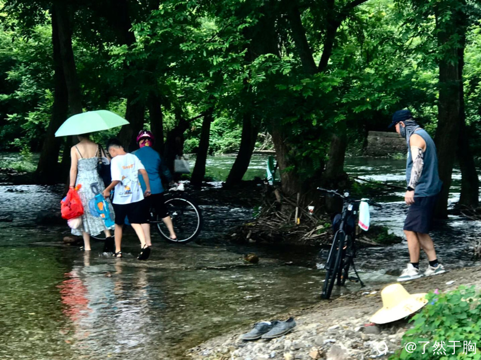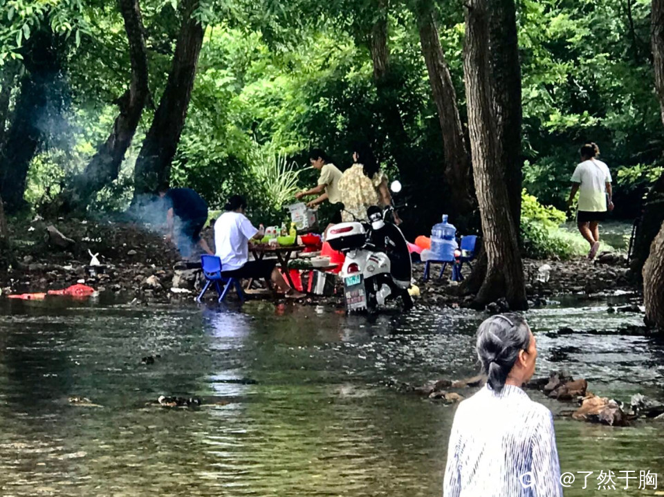 周末,灵川县潭下镇山口村岭尾渡河滩榉杨林中,虽然水涨陆地少,但却依旧有不少人前往消夏避暑戏水烧烤。