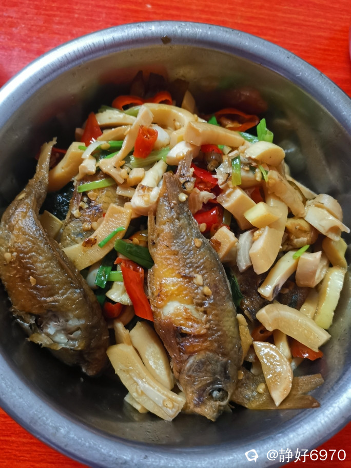 要知道,酸笋煮鱼是绝配,全州人特爱吃,于是回来之后,赶紧做一碗酸笋煮禾花鱼,放了紫苏,茴香,酸辣椒,御厨还在厨房煮着菜,我在客厅就闻到香,还未煮好,就迫不及待想尝一尝。一吃,哇塞,鱼肉鲜嫩,鱼刺细软,一嚼就碎,不用吐鱼骨头,平时我只吃一碗饭,今天吃鱼又添了一碗,最后看看饭锅,全扫光,就差把鼎锅刮烂。