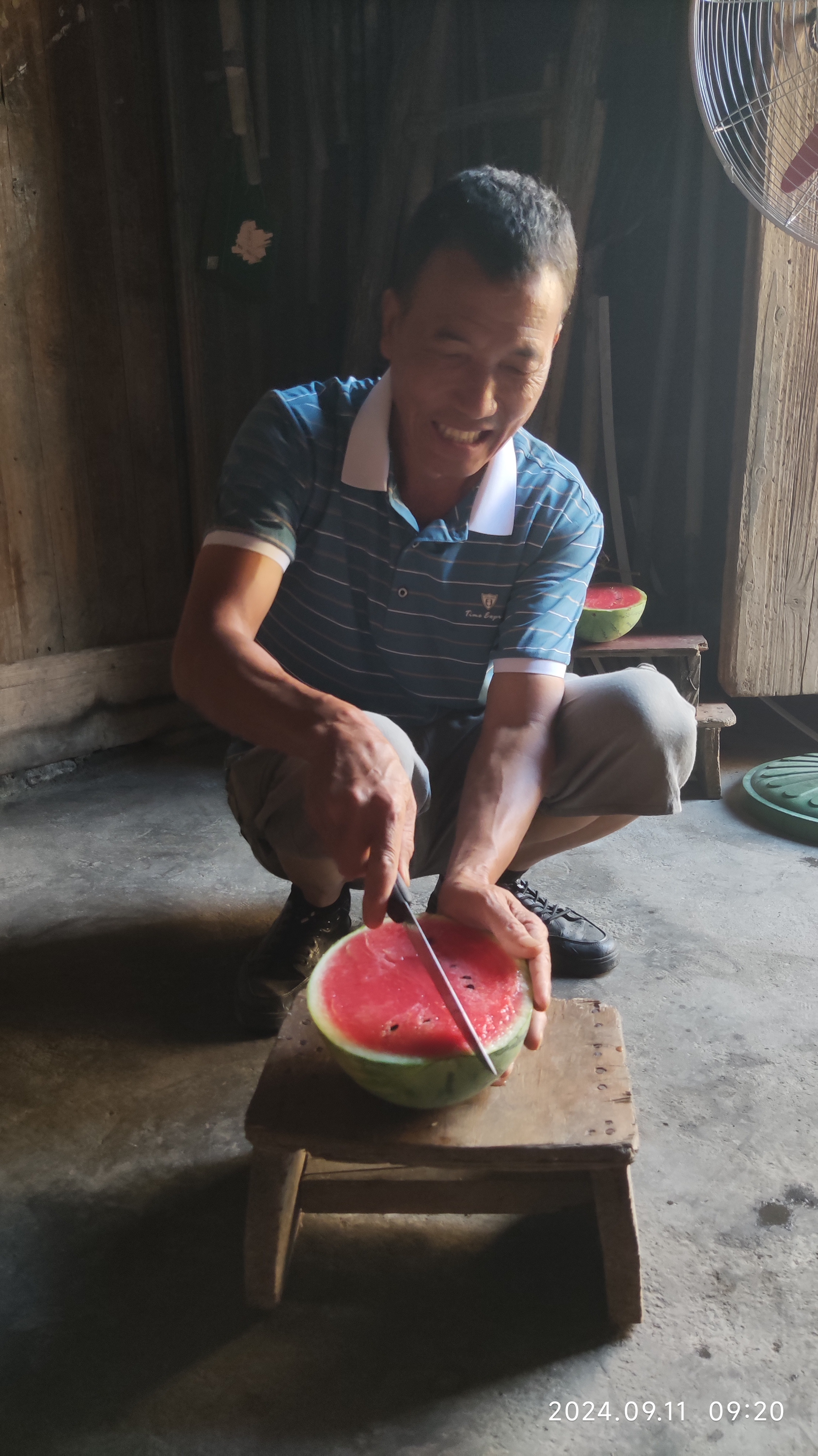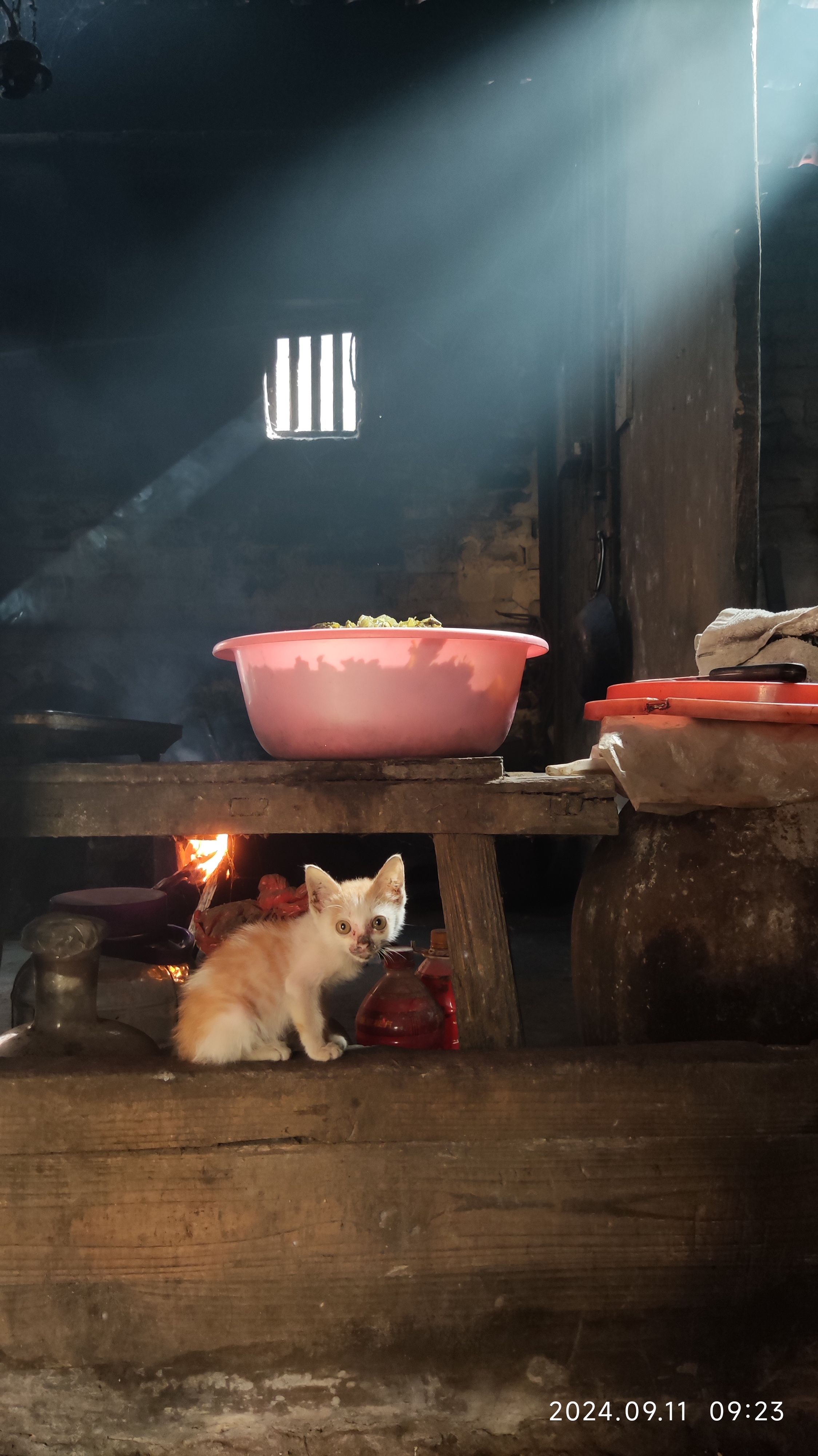 吃个自己种的西瓜先,天气预报讲今天最高气温36℃,太阳透进老屋,朋友的鸭子焖好了,酸芥菜备好了。这么小的猫,脸都没洗,就在上岗了。