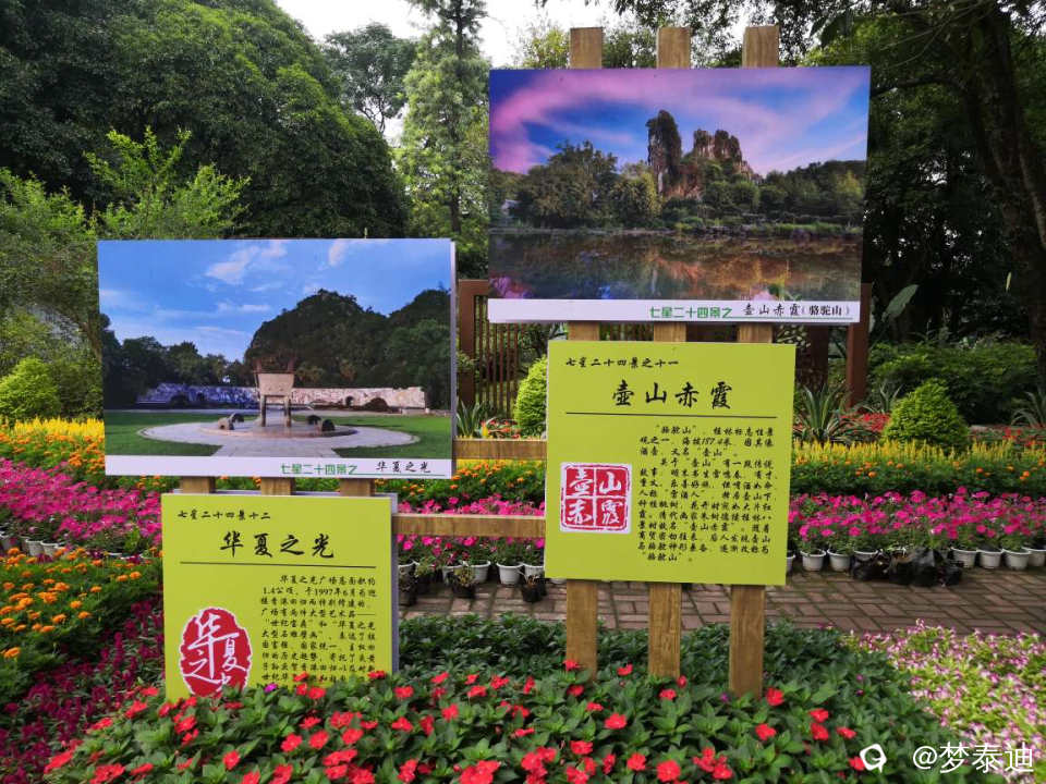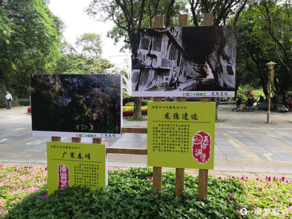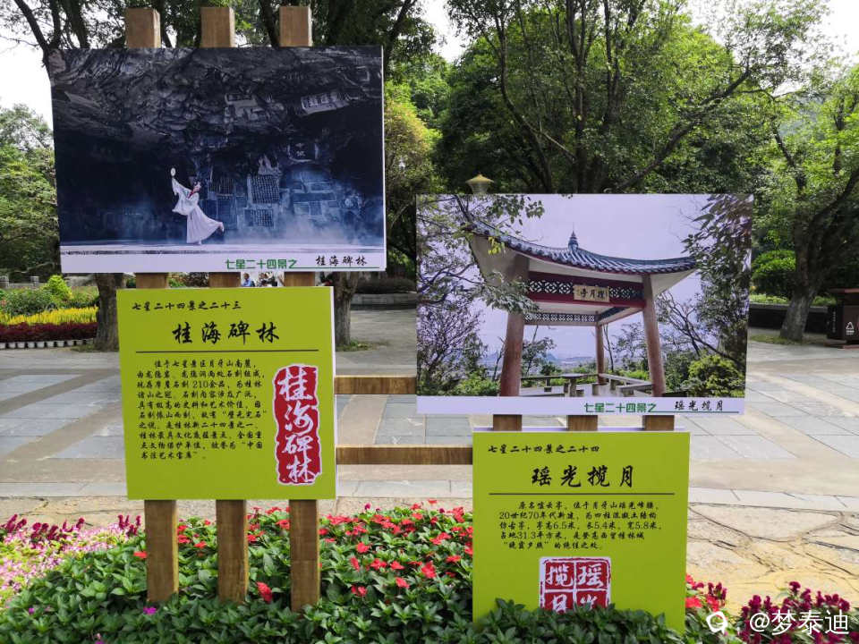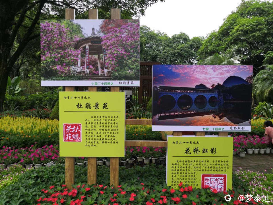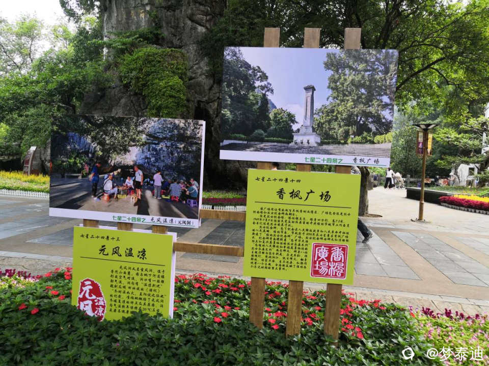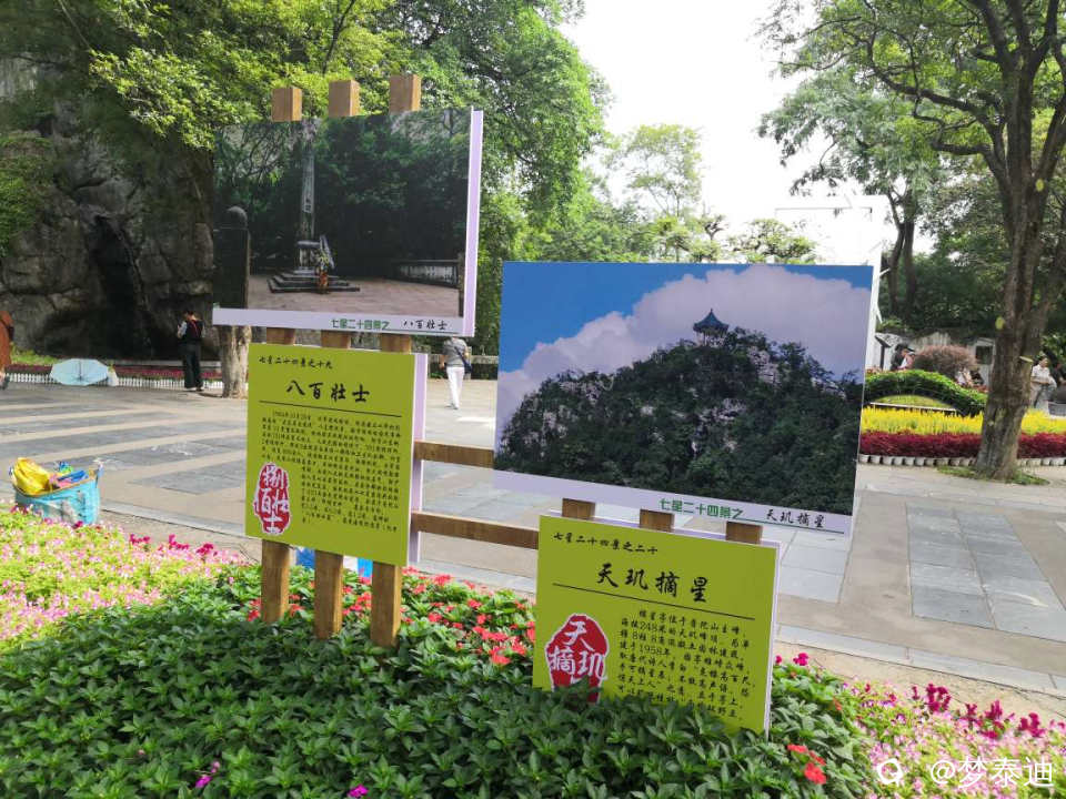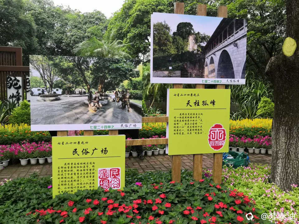 右手路边花坛,新立了一排介绍七星公园著名二十四景点的照片和简介。照片方便外地游客打卡游览,真不错!