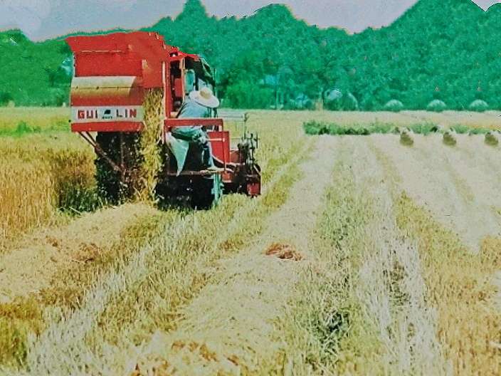 回顾往昔,那是在一片希望的田野上,阳光洒落在金黄的稻穗,闪烁着丰收的光芒。桂联厂的收割机在稻田里来回穿梭,发出阵阵轰鸣,伴随着滚滚稻浪奏响了丰收的乐章。它像一个不知疲倦的好帮手,一排排稻穗被整齐地割下,成为了稻田里一道亮丽的风景线。