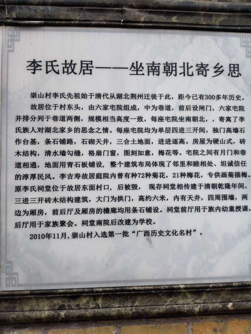 崇山古民居,历史文化底蕴深厚,人文历史渊源悠久,自清雍正乙卯(公元1735年)族人李中中举后,其儿子李树乔、李树端相继中举。
