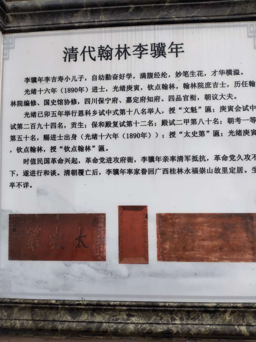 特别是 清代翰林李骥年,李骥年是李吉寿小儿子,自幼勤奋好学,满腹经纶,妙笔生花,才华横溢。于光绪十六年(1890年)进士,光绪庚寅,钦点翰林,翰林院庶吉士,历任翰林院编修、国史馆协修,四川保宁府、嘉定府知府。四品官衔,朝议大夫。